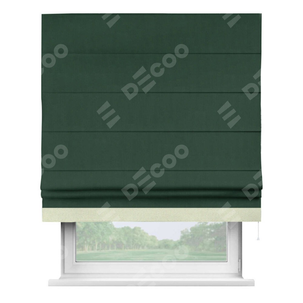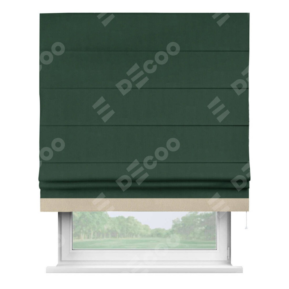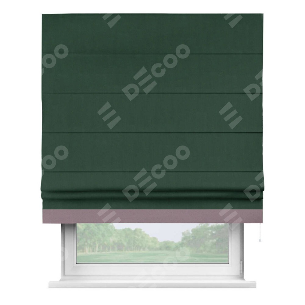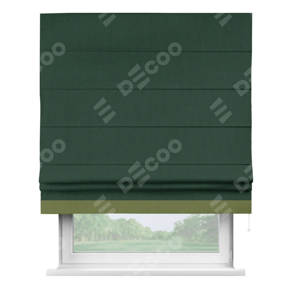 Римская штора «Кортин» для проема, блэкаут однотонный зелёный с кантом Джестер