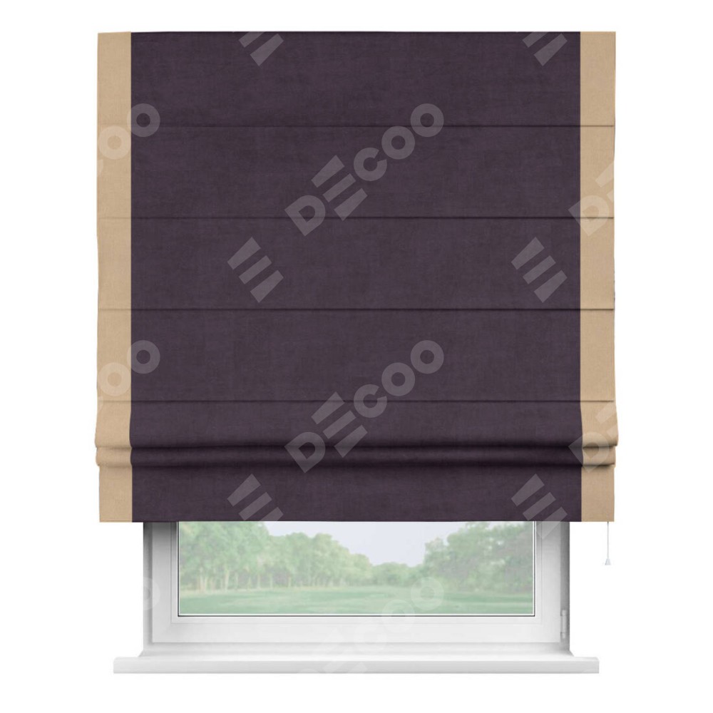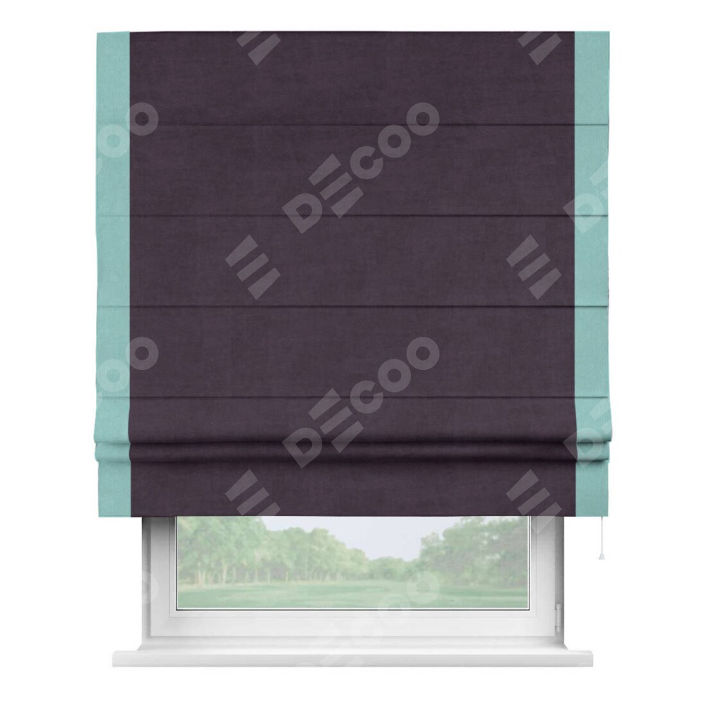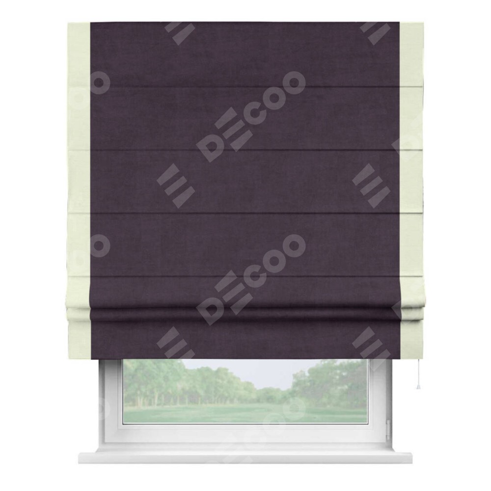Римская штора «Кортин» для проема, вельвет тёмно-фиолетовый с кантом Стрим Дуо