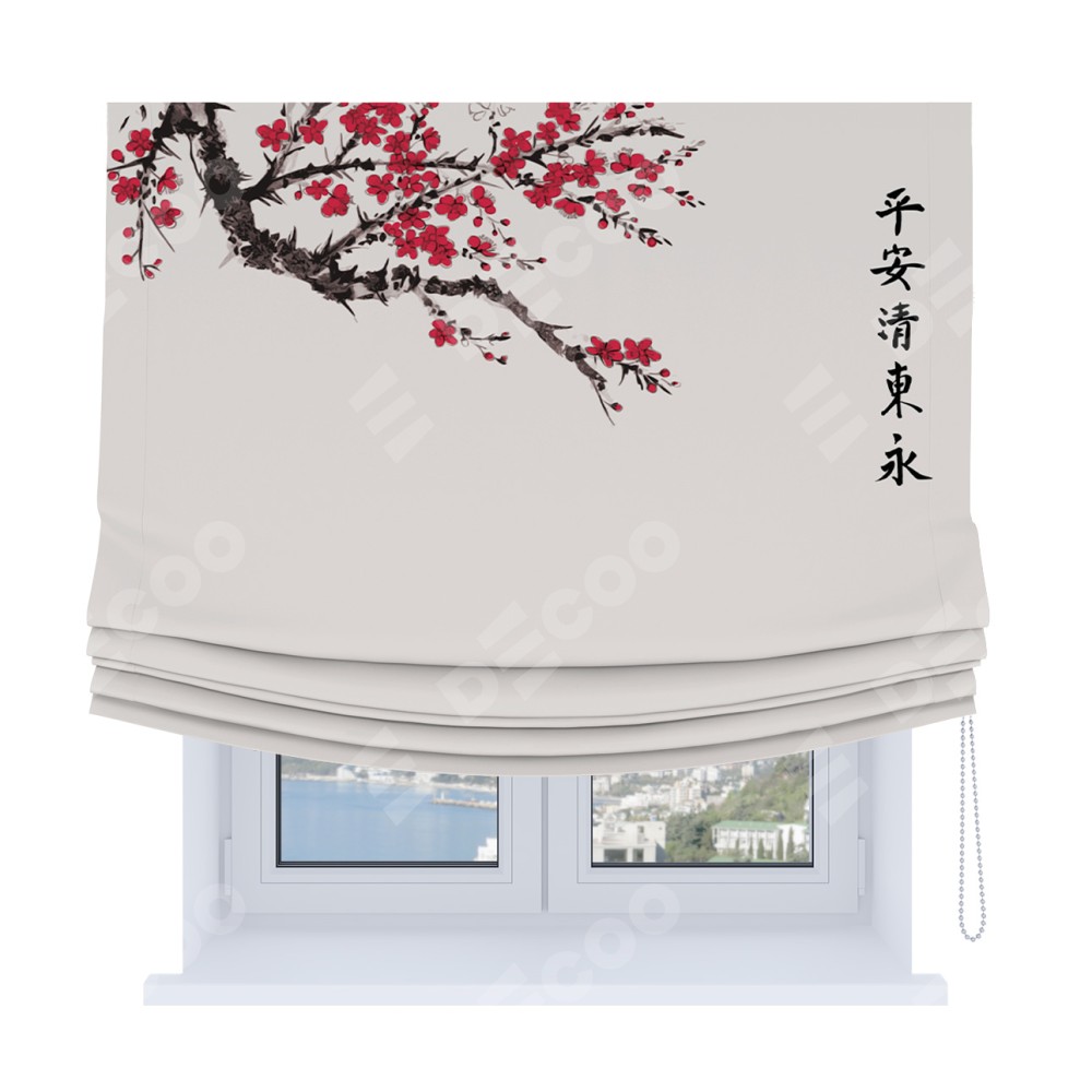 Римская штора Soft с мягкими складками, «Цветущая сакура»