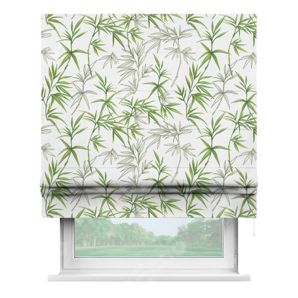 Классическая римская штора производителя «Cortin», пошита из ткани блэкаут с нанесением сублимационной печати «Зелёный бамбук». Имеет универсальный механизм и подходит для монтажа: на потолок, на стену и в нишу.