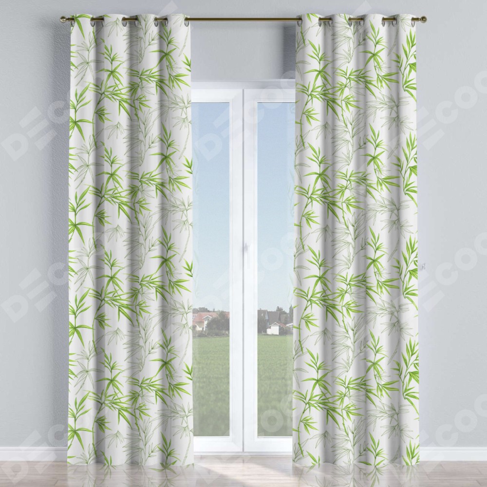 Комплект прямых штор, от производителя «Cortin», пошиты из ткани блэкаут с нанесением сублимационной печати «Зелёный бамбук». Данная модель пошита на люверсах, комплектуется на выбор круглым карнизом и подходит для монтажа на стену или потолок. Прямые шторы на люверсах шьются по стандарту с коэффициентом 1/2 (на 100 см. ширины проёма 200 см. ширины ткани), отличительным преимуществом данной модели является простой способ монтажа. Достаточно повесить ее на трубу и штора готова!