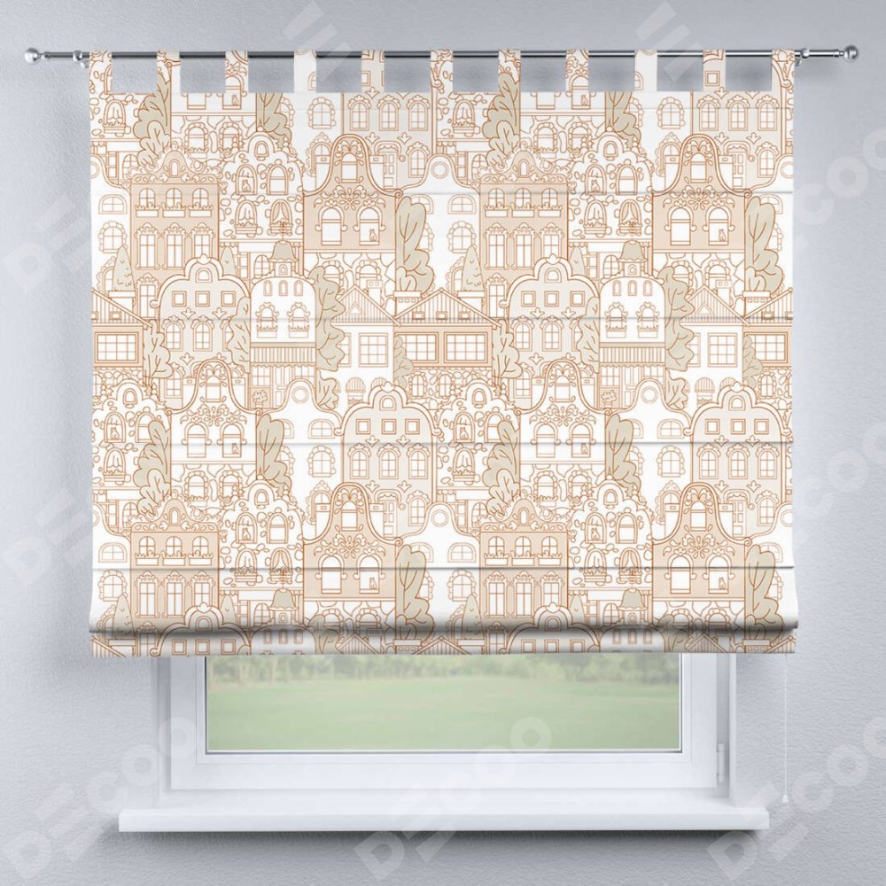 Римская штора производителя «Cortin», используется для проёма, пошита из ткани блэкаут с нанесением сублимационной печати «Милый городок». Данная модель пошита на петлях, комплектуется на выбор круглым карнизом и подходит для монтажа на стену. Римская штора на петлях имеет простую систему регулировки высоты, отличительным преимуществом данной модели является простой способ монтажа. Достаточно повесить ее на трубу и штора готова!