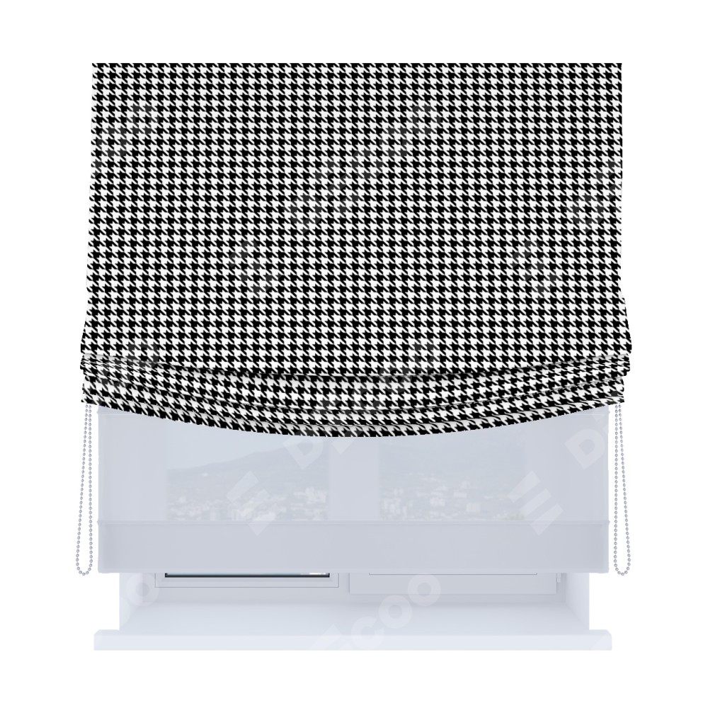 Римская штора «Кортин», день-ночь с мягкими складками, «Гусиные лапки» черно-белый»