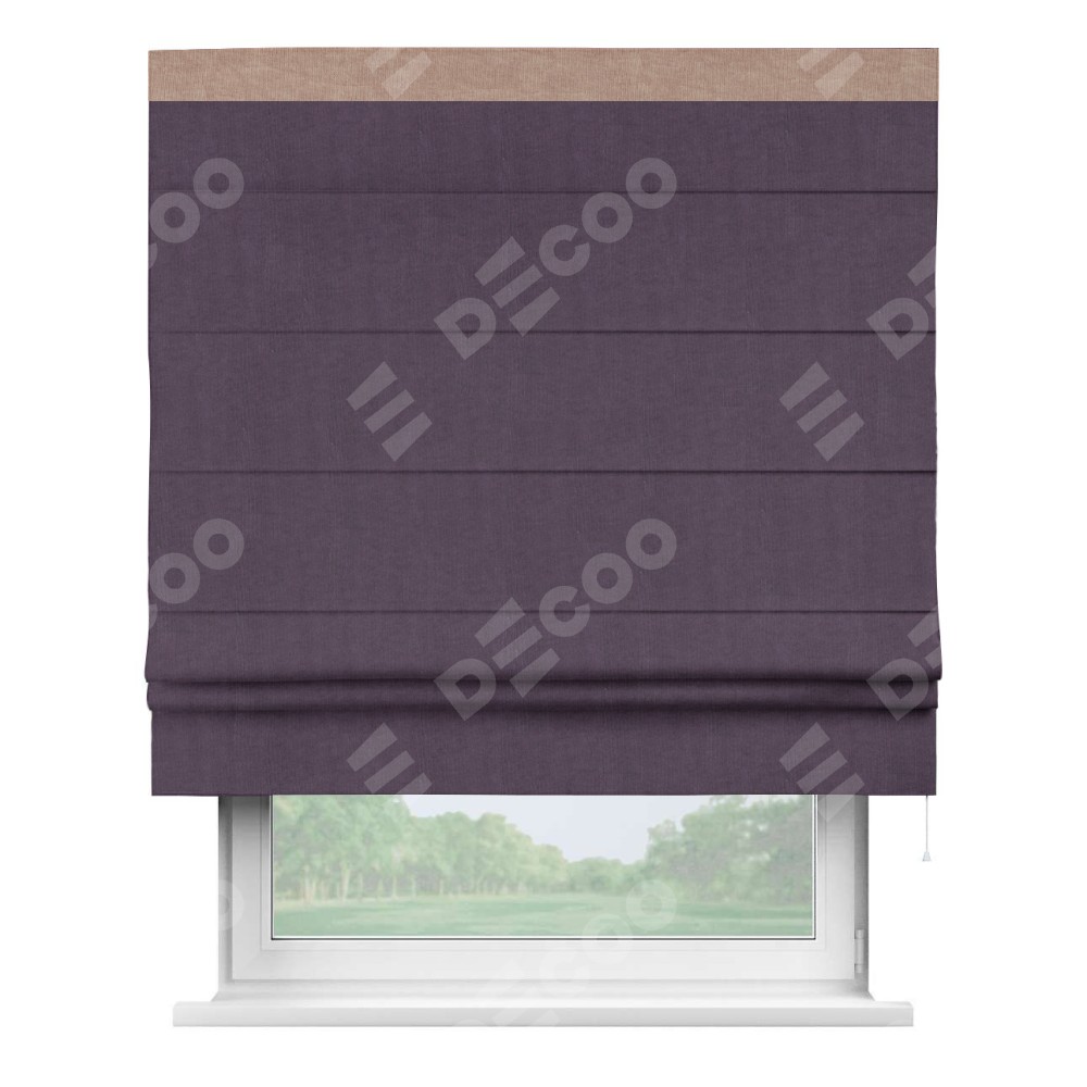 Римская штора «Кортин» для проема, канвас баклажановый, с кантом Кинг