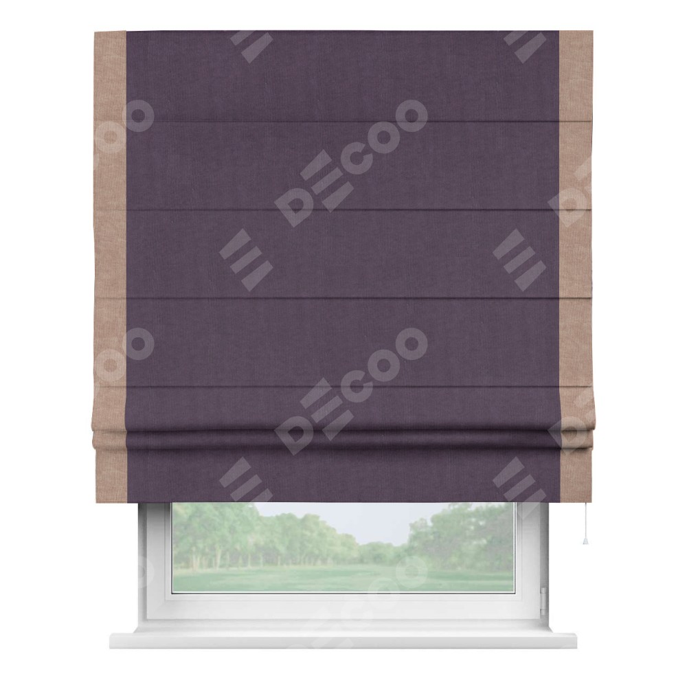 Римская штора «Кортин» для проема, канвас баклажановый, с кантом Стрим Дуо