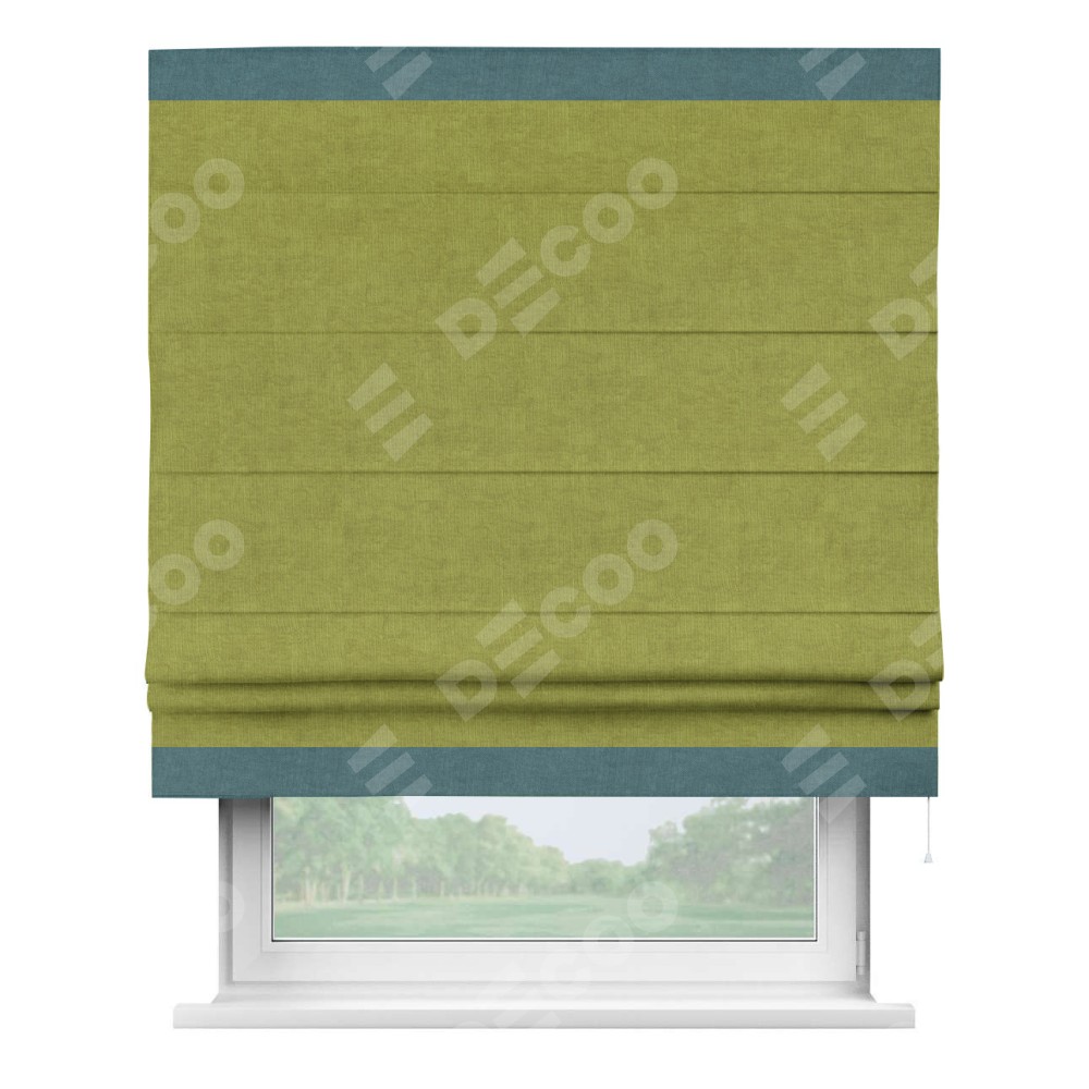 Римская штора «Кортин» для проема, канвас зелёное яблоко, с кантом Горизонт