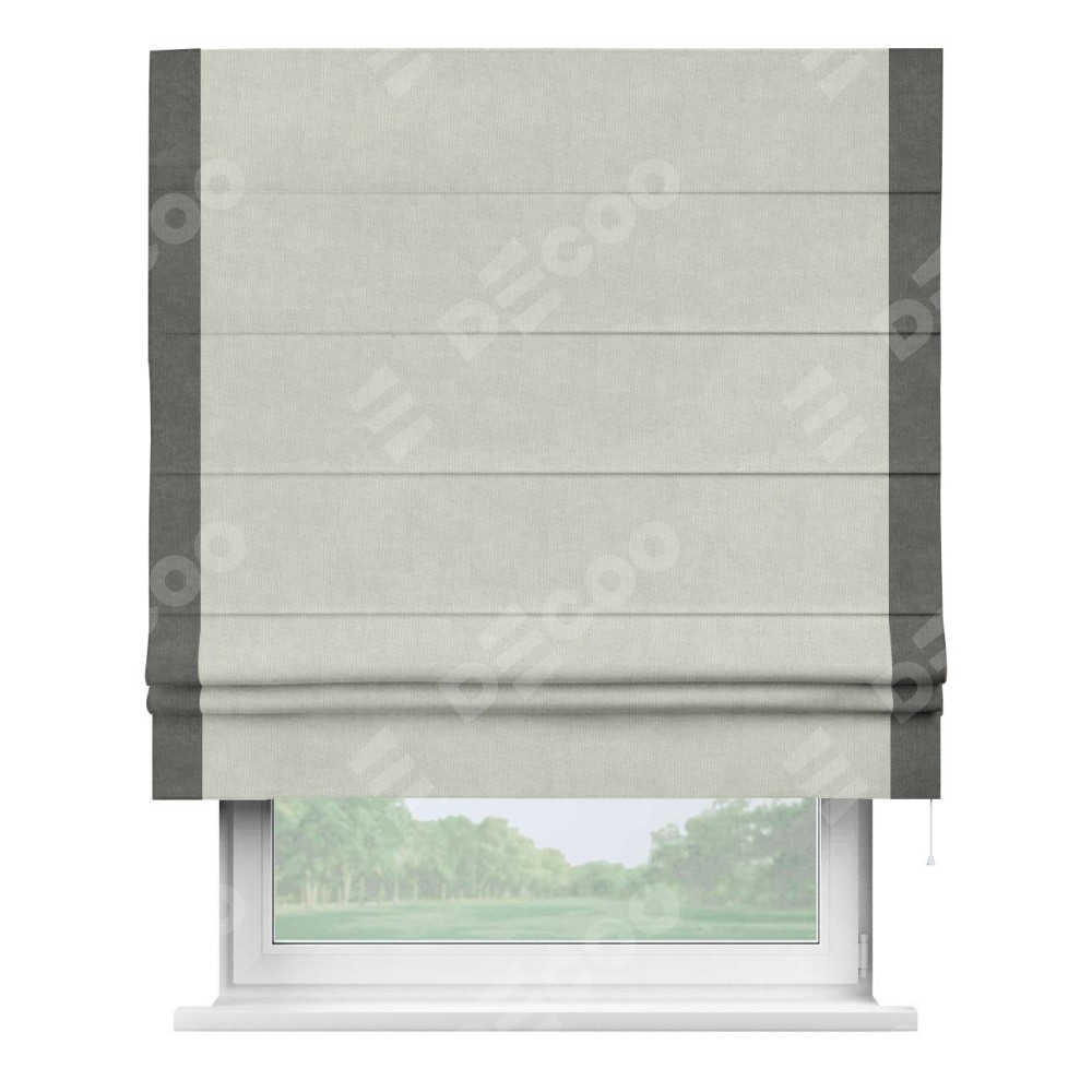 Римская штора «Кортин» для проема, канвас светло-серый, с кантом Стрим Дуо
