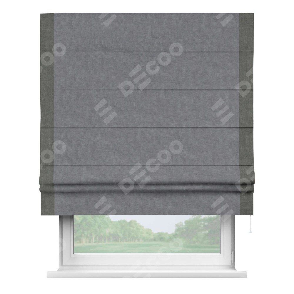 Римская штора «Кортин» для проема, канвас стальной, с кантом Стрим Дуо