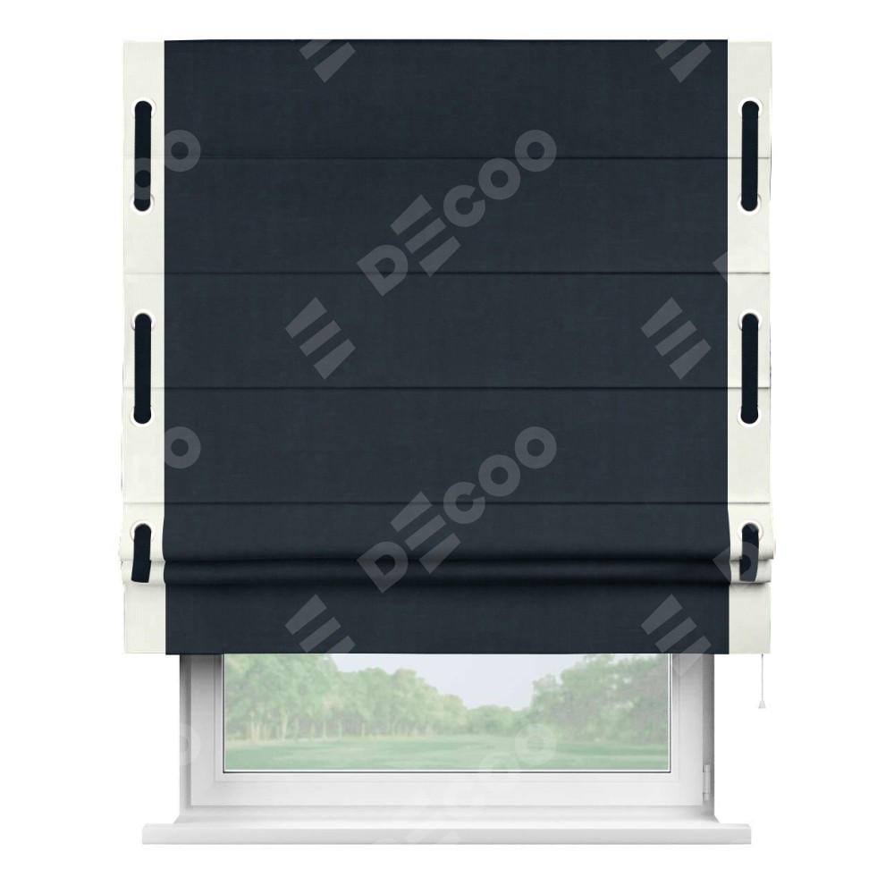 Римская штора «Кортин» для проема, канвас тёмно-синий, с кантом Стрим Дуо (люверсы с пояском)