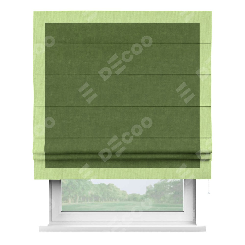 Римская штора «Кортин» для проема, канвас трава, с кантом Чесс