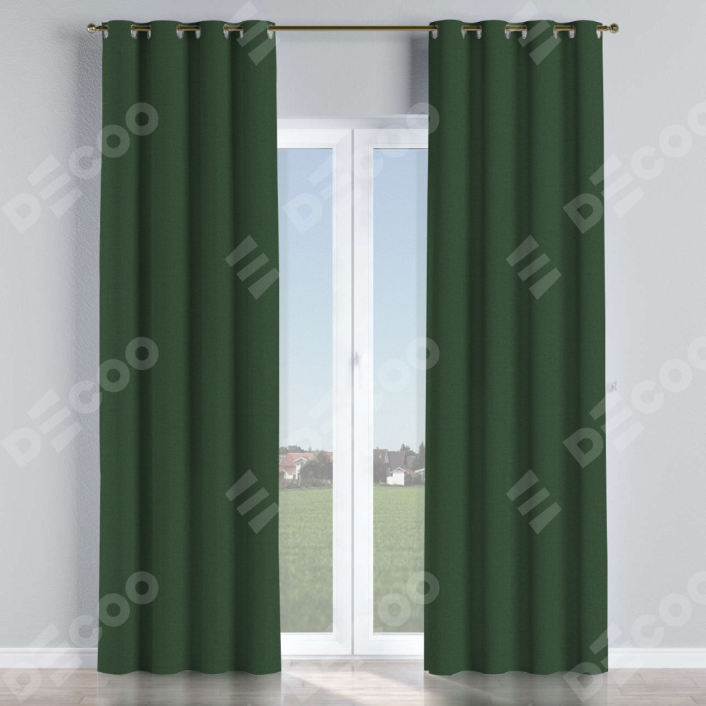 Комплект прямых штор, от производителя «Cortin», пошиты из ткани канвас глубокий зелёный, артикул ткани v-588. Данная модель пошита на люверсах, комплектуется на выбор круглым карнизом и подходит для монтажа на стену или потолок. Прямые шторы на люверсах шьются по стандарту с коэффициентом 1/2 (на 100 см. ширины проёма 200 см. ширины ткани), отличительным преимуществом данной модели является простой способ монтажа. Достаточно повесить ее на трубу и штора готова!