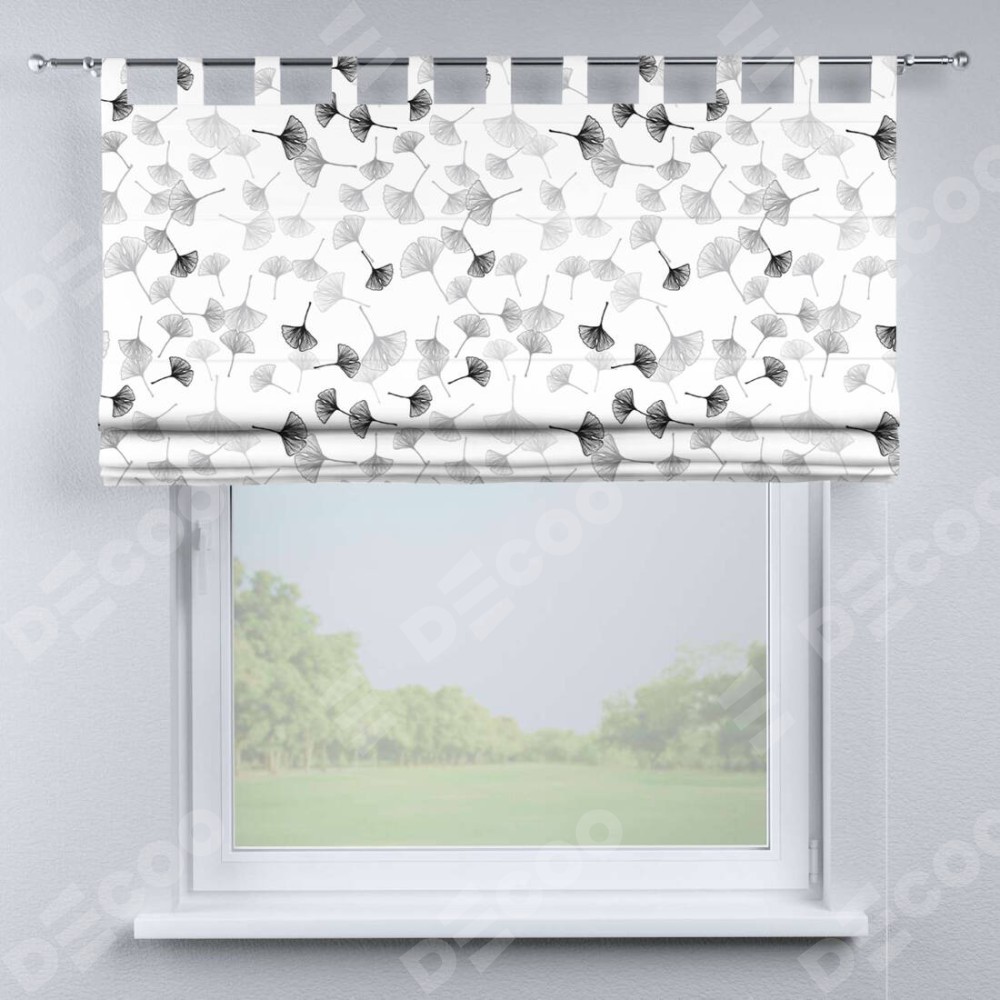 Римская штора производителя «Cortin», используется для проёма, пошита из ткани блэкаут с нанесением сублимационной печати «Дымчатые листочки». Данная модель пошита на петлях, комплектуется на выбор круглым карнизом и подходит для монтажа на стену. Римская штора на петлях имеет простую систему регулировки высоты, отличительным преимуществом данной модели является простой способ монтажа. Достаточно повесить ее на трубу и штора готова!
