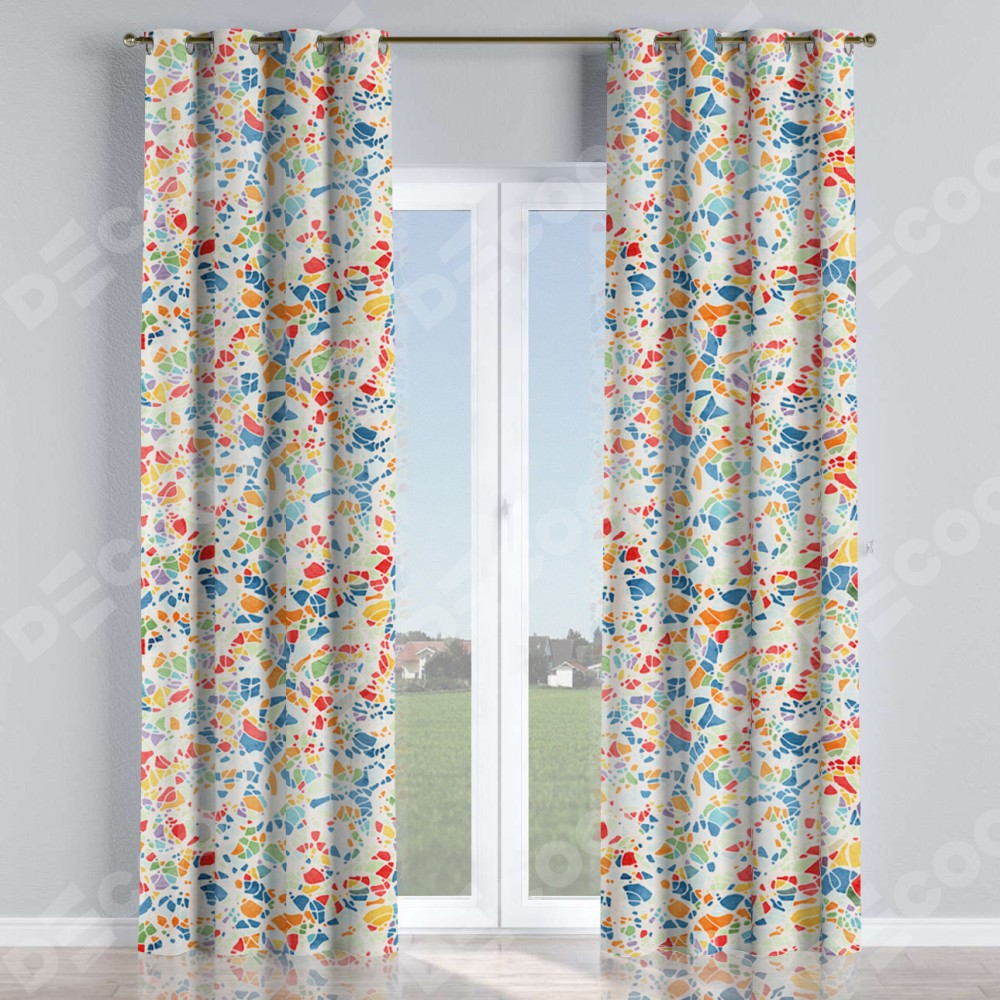 Комплект прямых штор, от производителя «Cortin», пошиты из ткани блэкаут с нанесением сублимационной печати «Калейдоскоп». Данная модель пошита на люверсах, комплектуется на выбор круглым карнизом и подходит для монтажа на стену или потолок. Прямые шторы на люверсах шьются по стандарту с коэффициентом 1/2 (на 100 см. ширины проёма 200 см. ширины ткани), отличительным преимуществом данной модели является простой способ монтажа. Достаточно повесить ее на трубу и штора готова!