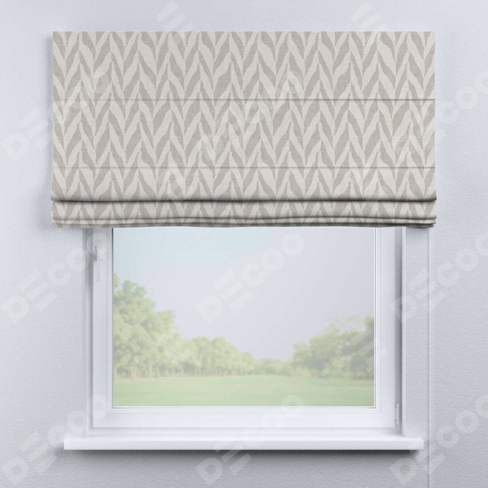 Классическая римская штора производителя «Cortin», пошита из ткани блэкаут с нанесением сублимационной печати «Песочный зебрано». Имеет универсальный механизм и подходит для монтажа: на потолок, на стену и в нишу.