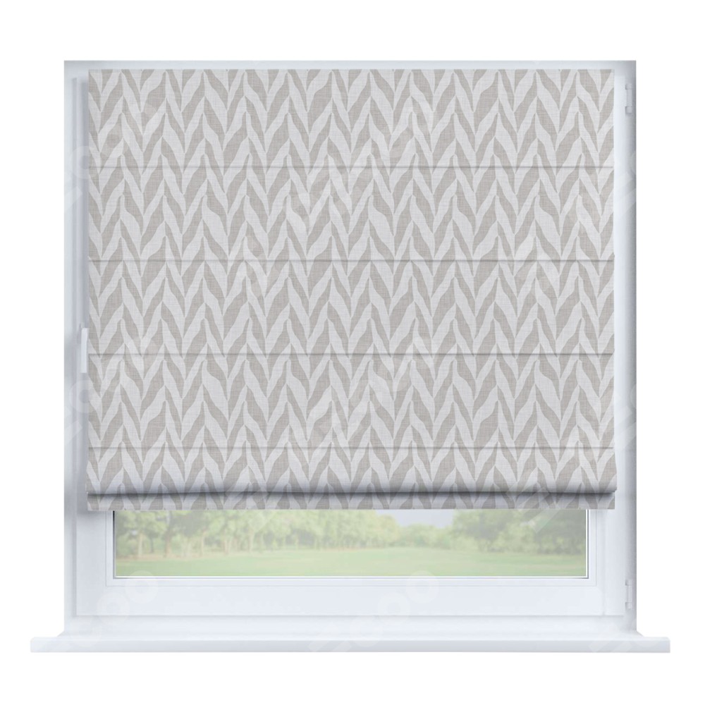 Римская штора производителя «Cortin», устанавливается на створку окна, пошита из ткани блэкаут с нанесением сублимационной печати «Песочный зебрано». Штора шьётся по индивидуальным размерам, для данного типа римской шторы возможная ширина от 35 до 150 см., высота до 250 см.
