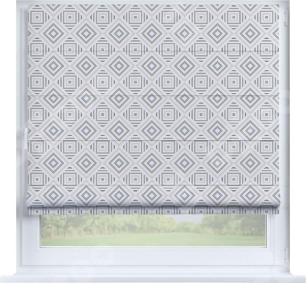 Римская штора производителя «Cortin», устанавливается на створку окна, пошита из ткани блэкаут с нанесением сублимационной печати «Техно серый». Штора шьётся по индивидуальным размерам, для данного типа римской шторы возможная ширина от 35 до 150 см., высота до 250 см.