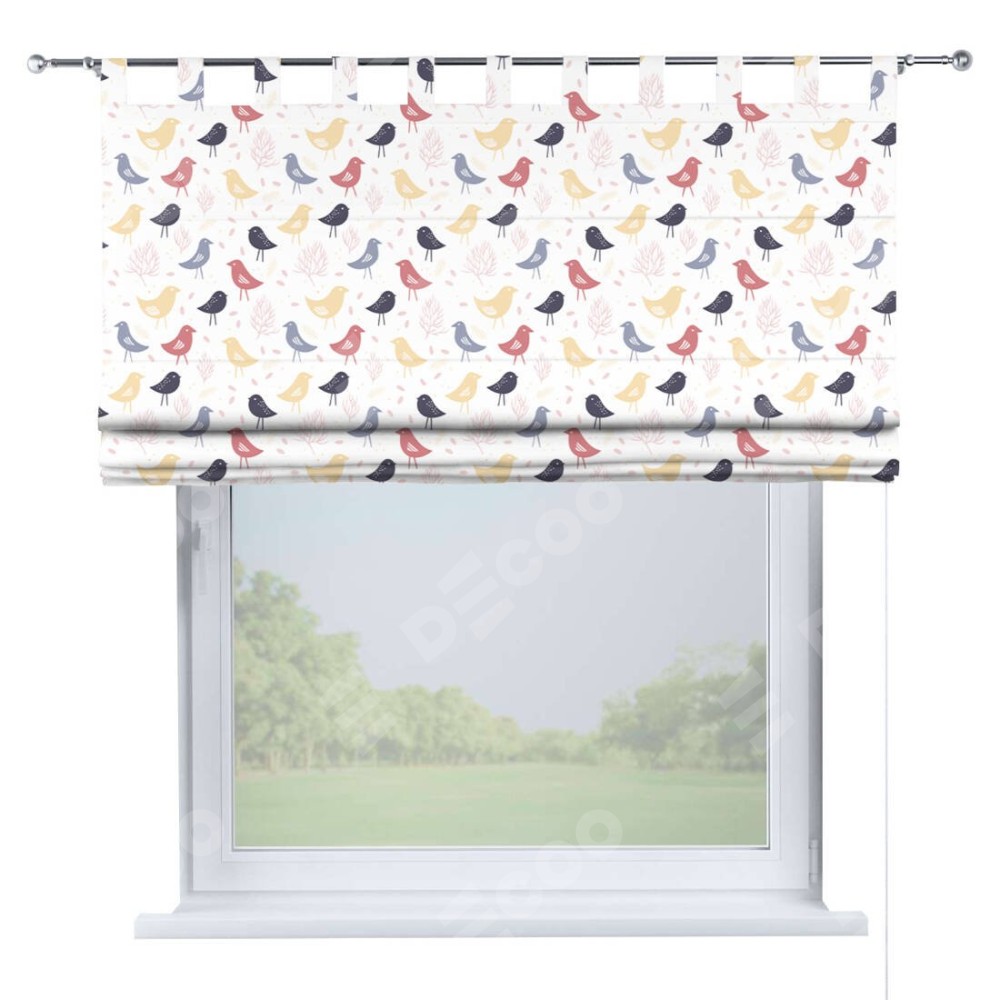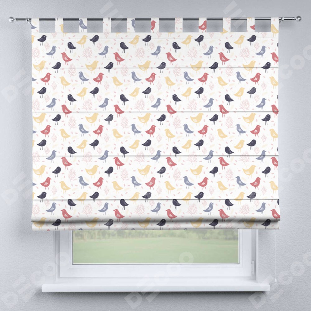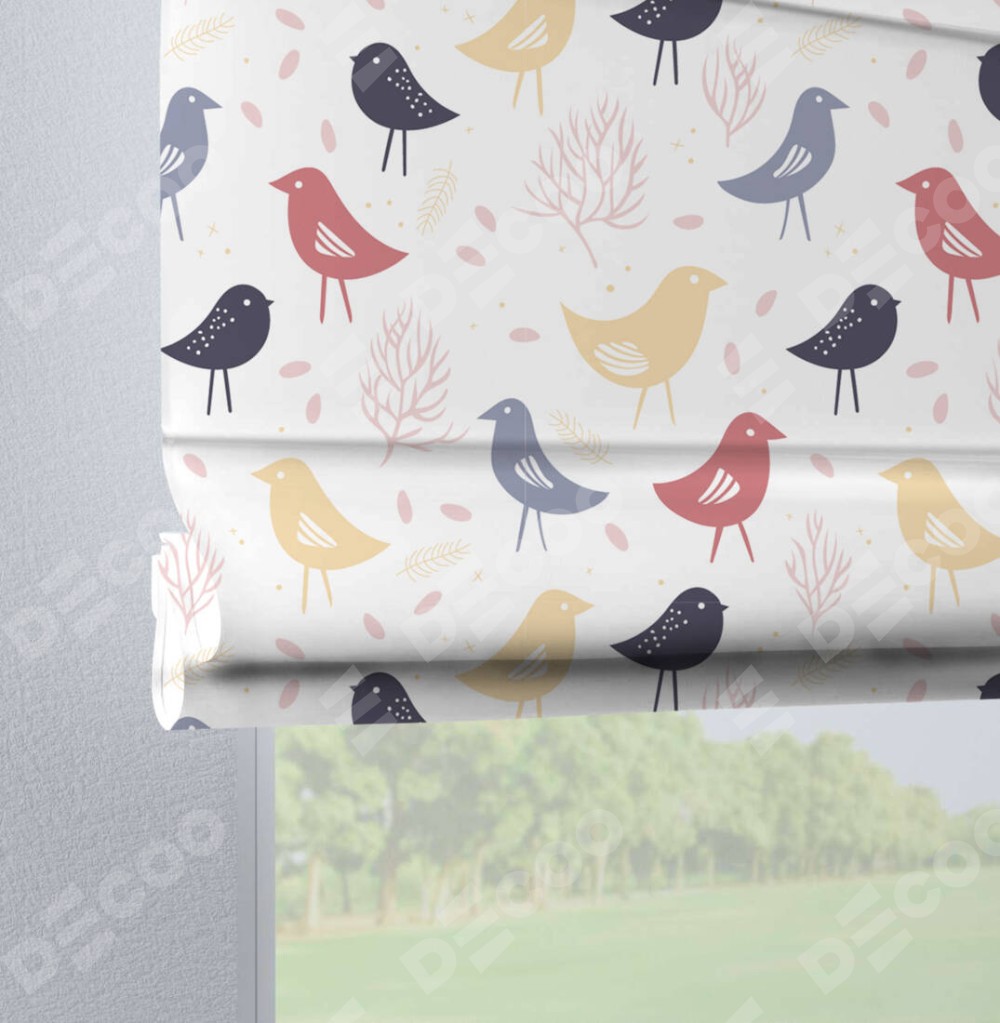 Римская штора производителя «Cortin», используется для проёма, пошита из ткани блэкаут с нанесением сублимационной печати «Цветные птички». Данная модель пошита на петлях, комплектуется на выбор круглым карнизом и подходит для монтажа на стену. Римская штора на петлях имеет простую систему регулировки высоты, отличительным преимуществом данной модели является простой способ монтажа. Достаточно повесить ее на трубу и штора готова!
