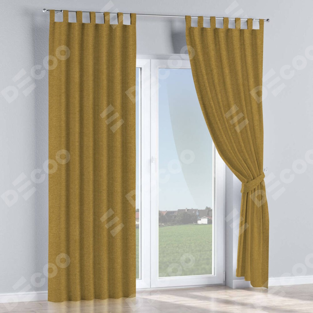 Комплект прямых штор, от производителя «Cortin», пошиты из ткани твид блэкаут горчица, артикул ткани 91237. Данная модель пошита на петлях, комплектуется на выбор круглым карнизом и подходит для монтажа на стену или потолок. Прямые шторы на петлях шьются по стандарту с коэффициентом 1/2 (на 100 см. ширины проёма 200 см. ширины ткани), отличительным преимуществом данной модели является простой способ монтажа. Достаточно повесить ее на трубу и штора готова!