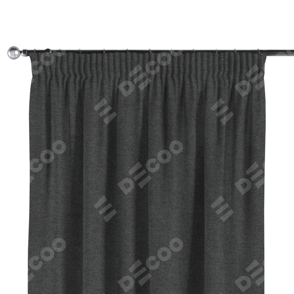 Комплект прямых штор, от производителя «Cortin», пошиты из ткани твид блэкаут тёмно-серый, артикул ткани 90938. С изнаночной стороны в верхней части штор пристрачивается шторная лента с декоративными складками «Карандаш». Для создания элегантных складок прямые шторы шьются по стандарту с коэффициентом 1:2 (на 100 см. ширины проёма 200 см. ширины ткани).