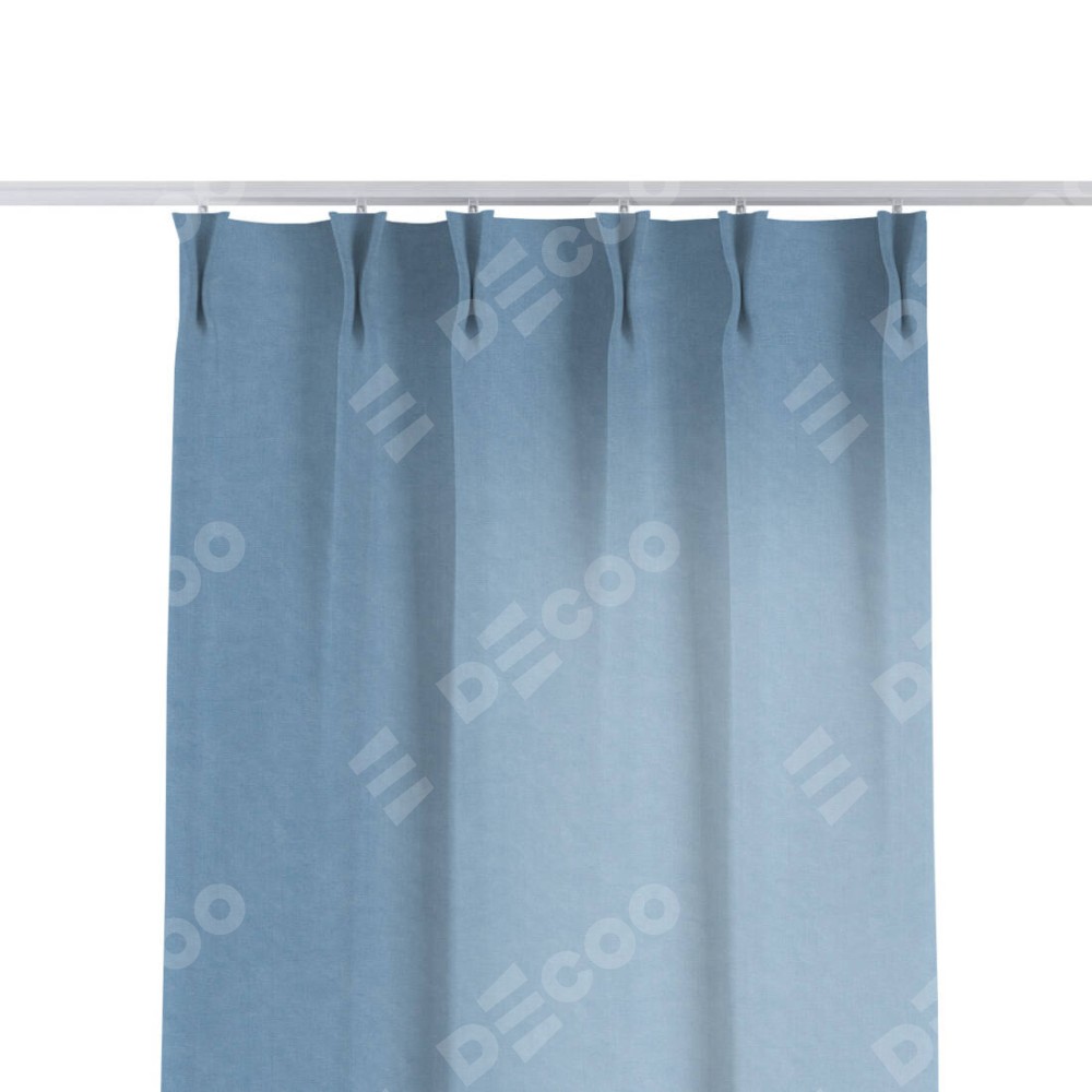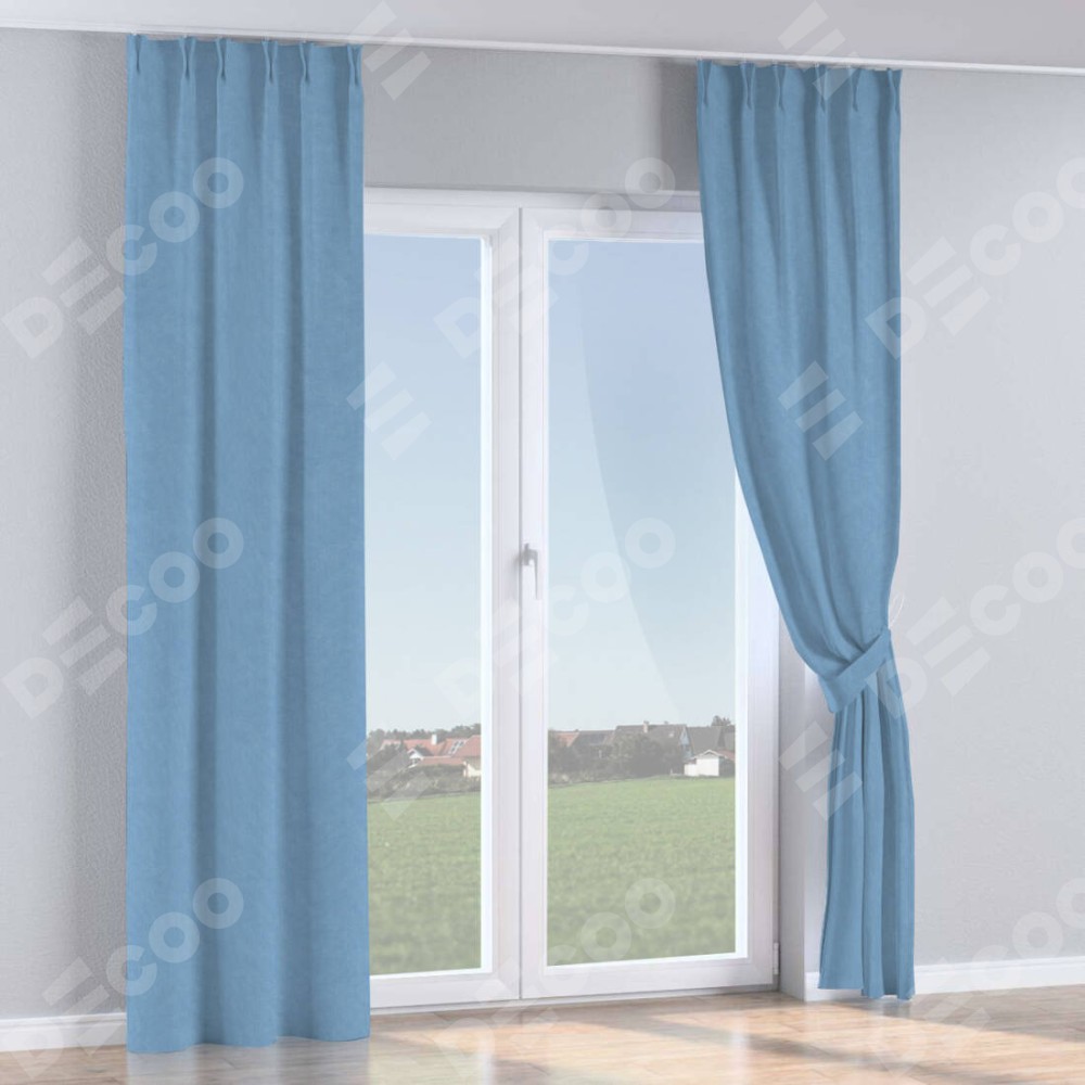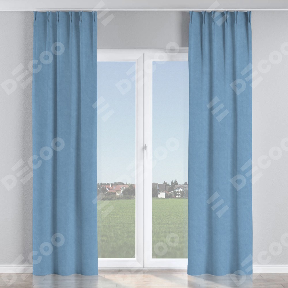 Комплект прямых штор, от производителя «Cortin», пошиты из ткани канвас голубой, артикул ткани 92729. С изнаночной стороны в верхней части штор пристрачивается шторная лента с декоративными складками «Кустик». Для создания элегантных складок прямые шторы шьются по стандарту с коэффициентом 1:2 (на 100 см. ширины проёма 200 см. ширины ткани).