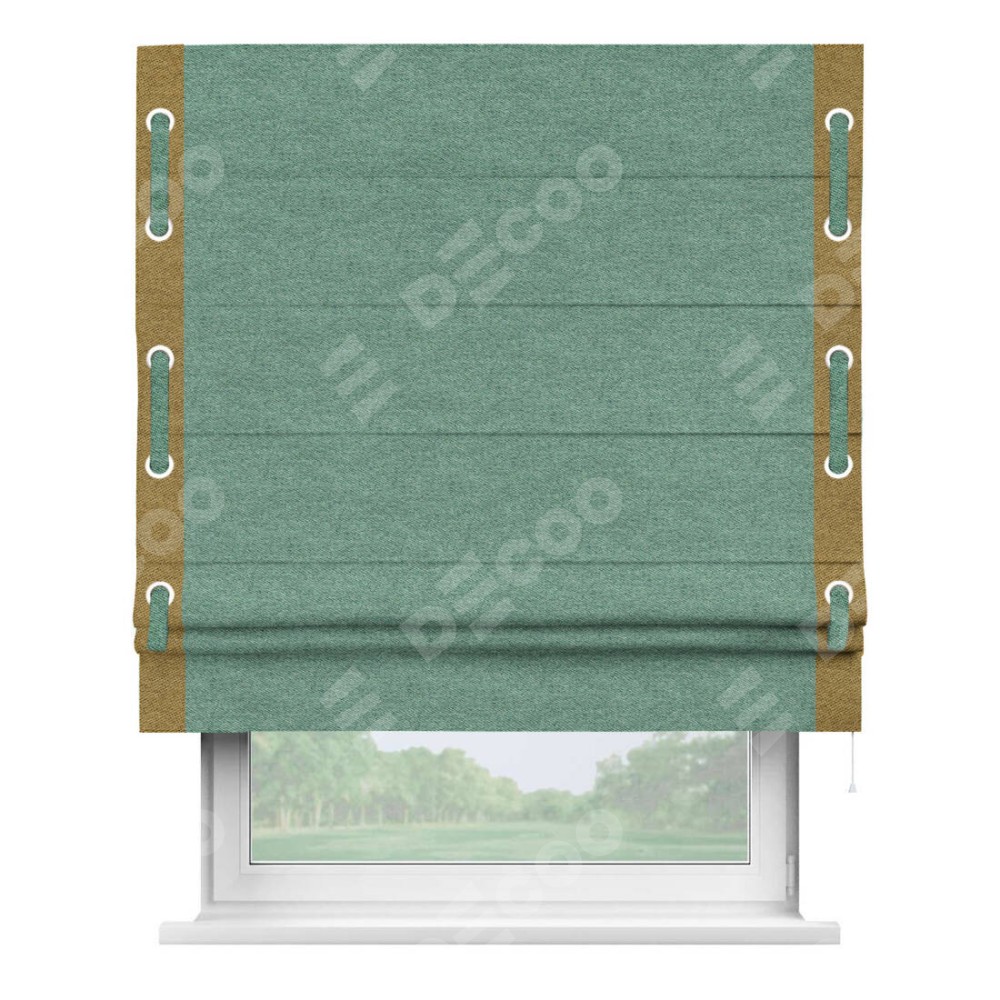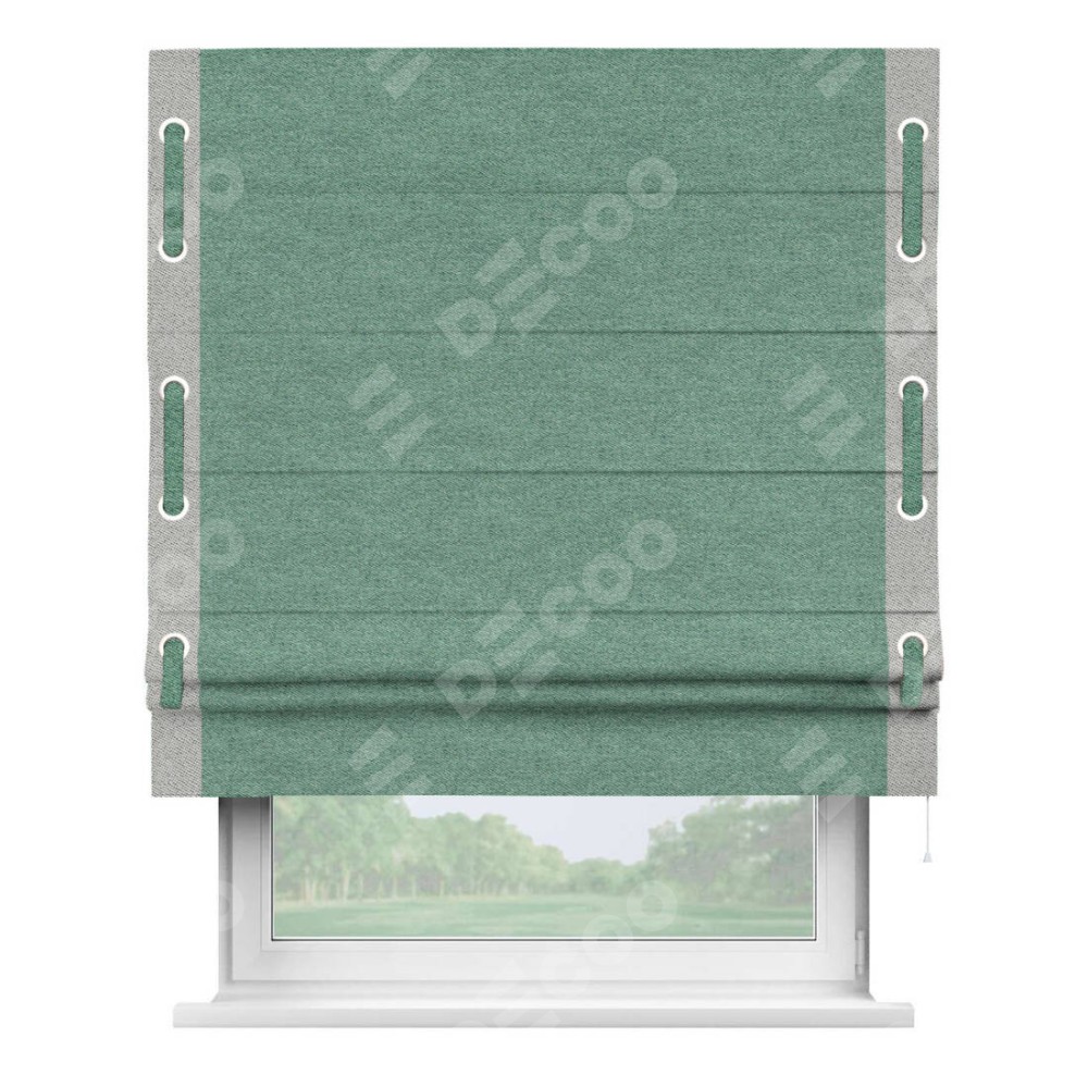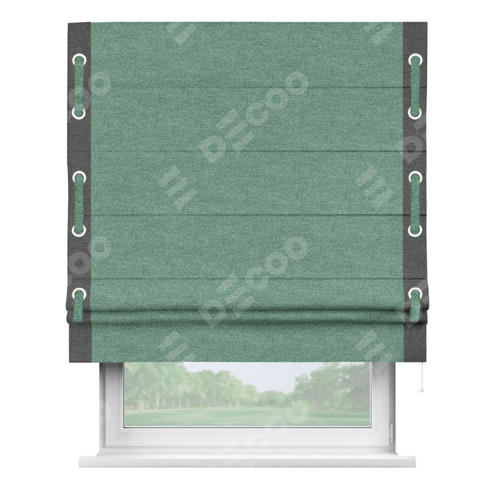 Римская штора «Кортин» с кантом Стрим Дуо (люверсы с пояском), для проема, твид блэкаут бирюзовый