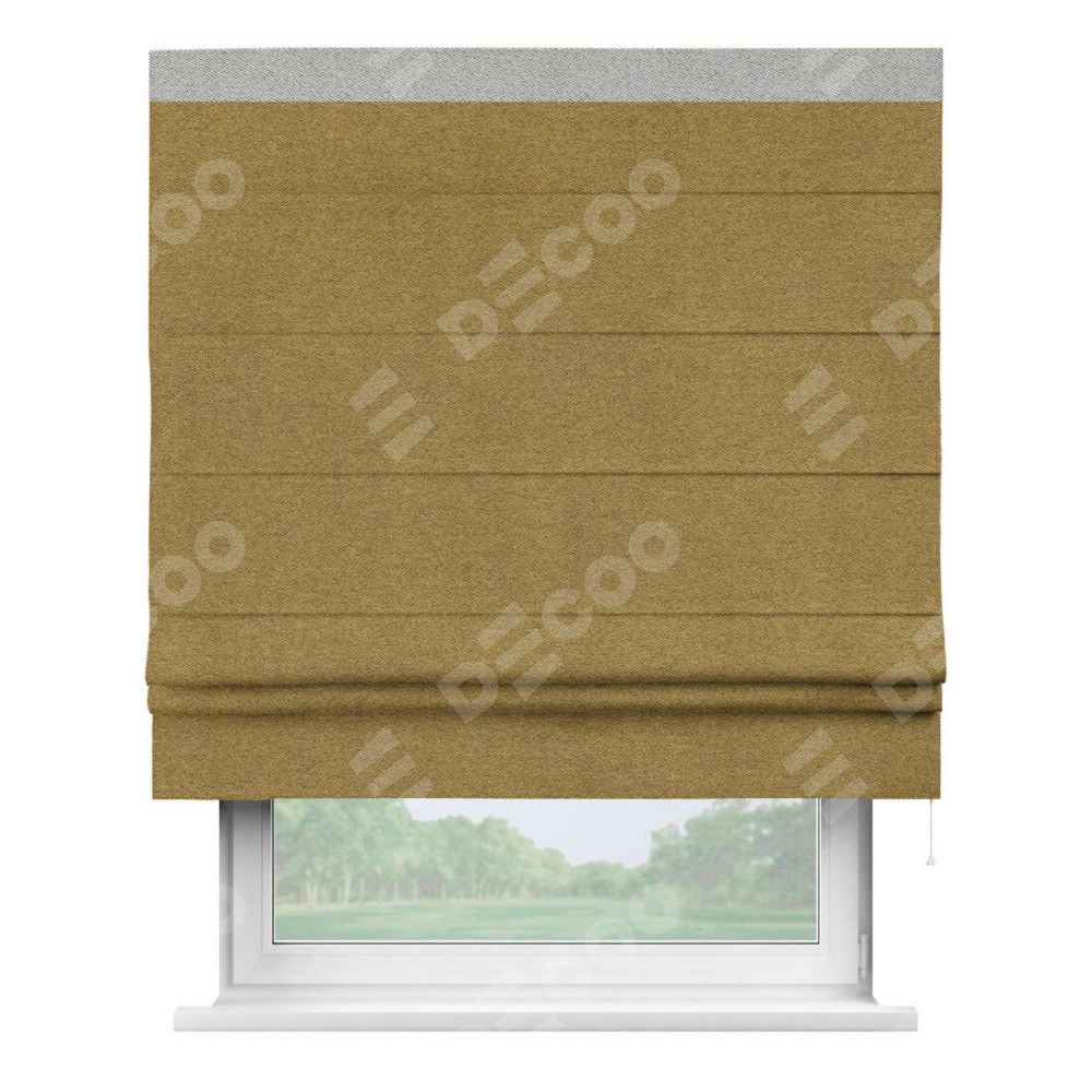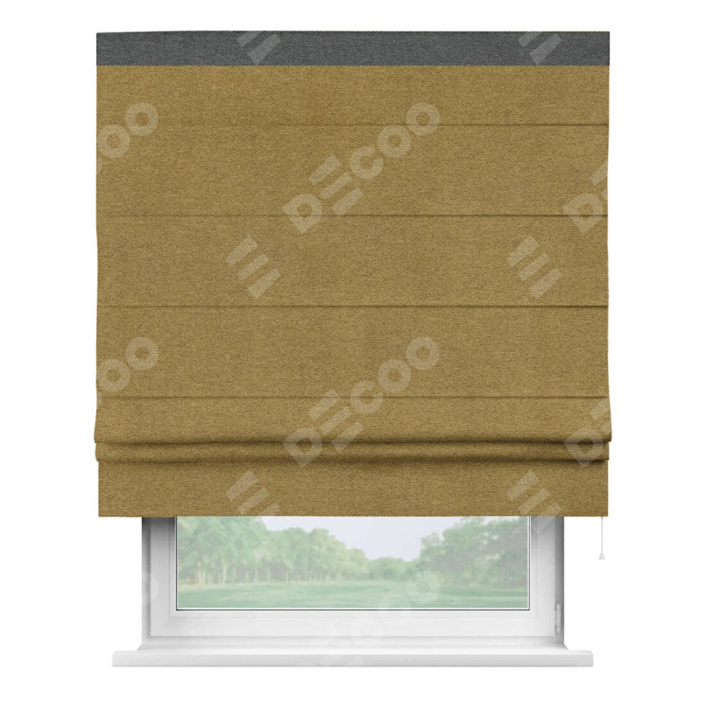 Римская штора «Кортин» с кантом Кинг, для проема, твид блэкаут горчица
