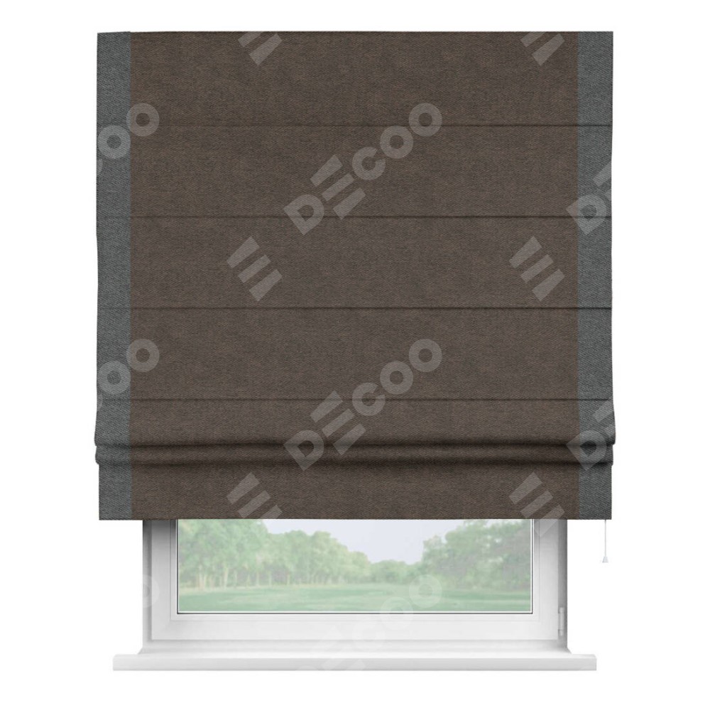 Римская штора «Кортин» для проема, твид блэкаут тёмно-коричневый, с кантом Стрим Дуо