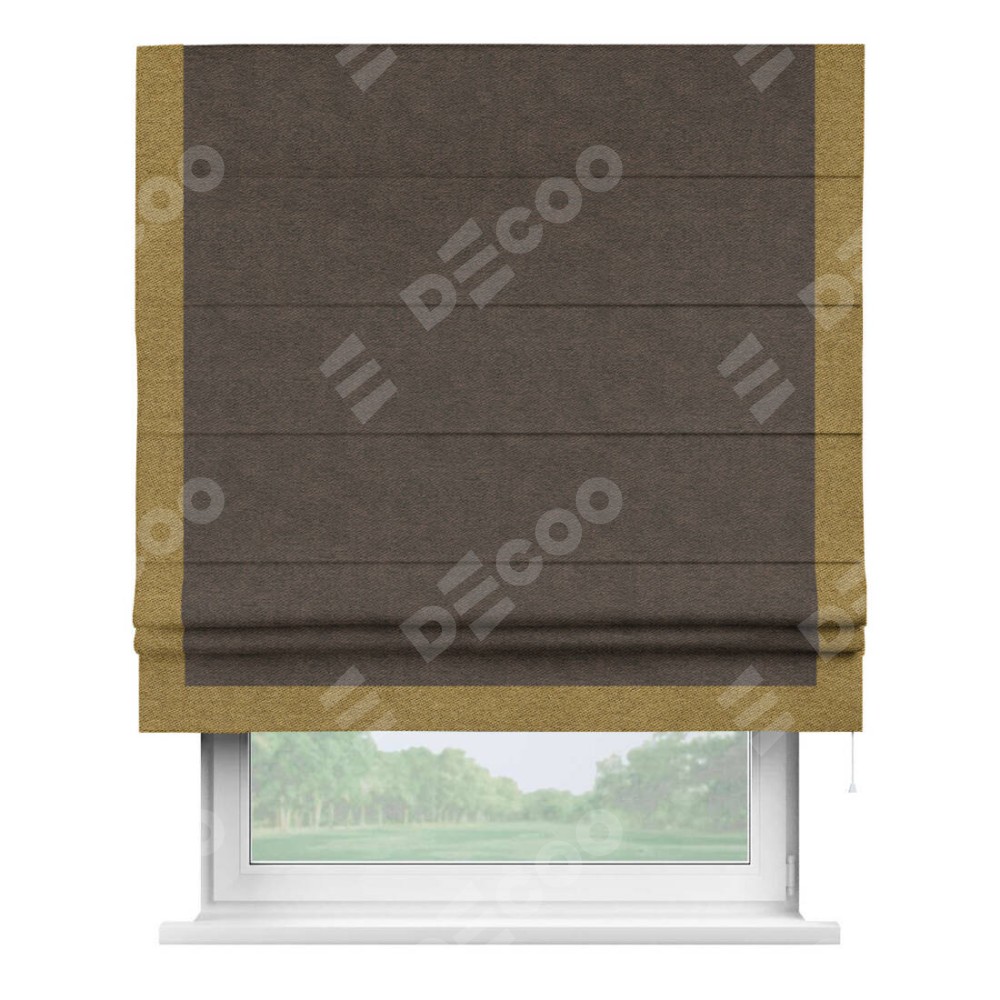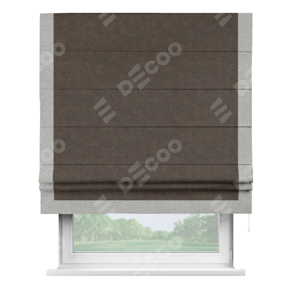 Римская штора «Кортин» для проема, твид блэкаут тёмно-коричневый, с кантом Виктория