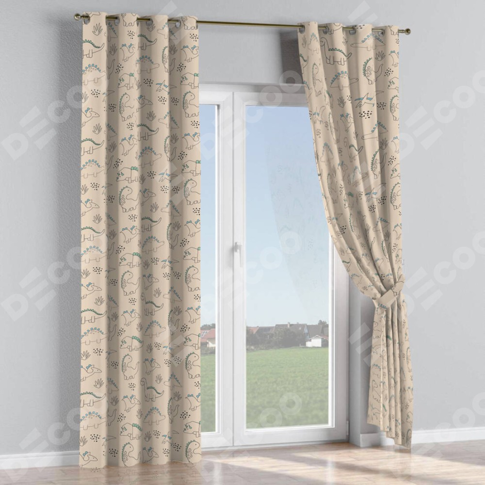 Комплект прямых штор, от производителя «Cortin», пошиты из ткани блэкаут с нанесением сублимационной печати «Динозаврики». Данная модель пошита на люверсах, комплектуется на выбор круглым карнизом и подходит для монтажа на стену или потолок. Прямые шторы на люверсах шьются по стандарту с коэффициентом 1/2 (на 100 см. ширины проёма 200 см. ширины ткани), отличительным преимуществом данной модели является простой способ монтажа. Достаточно повесить ее на трубу и штора готова!