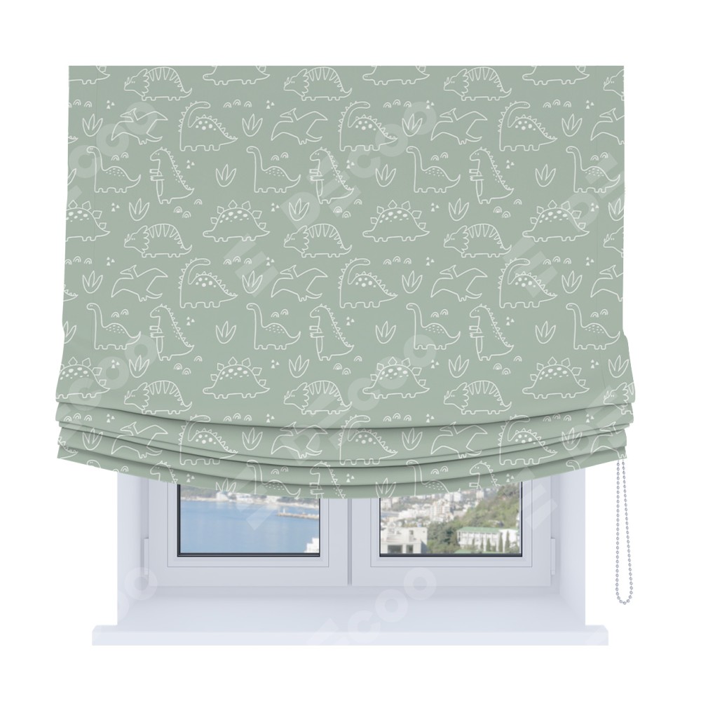 Римская штора Soft производителя «Cortin», используется для проёма, пошита из ткани блэкаут с нанесением сублимационной печати «Динопарк». Имеет универсальный механизм и подходит для монтажа: на потолок, на стену и в нишу. В отличие от стандартных римских штор, римская штора Soft не имеет горизонтальных вставок и нижнего отвеса. Это позволяет ткани произвольно драпироваться в свободные мягкие складки.