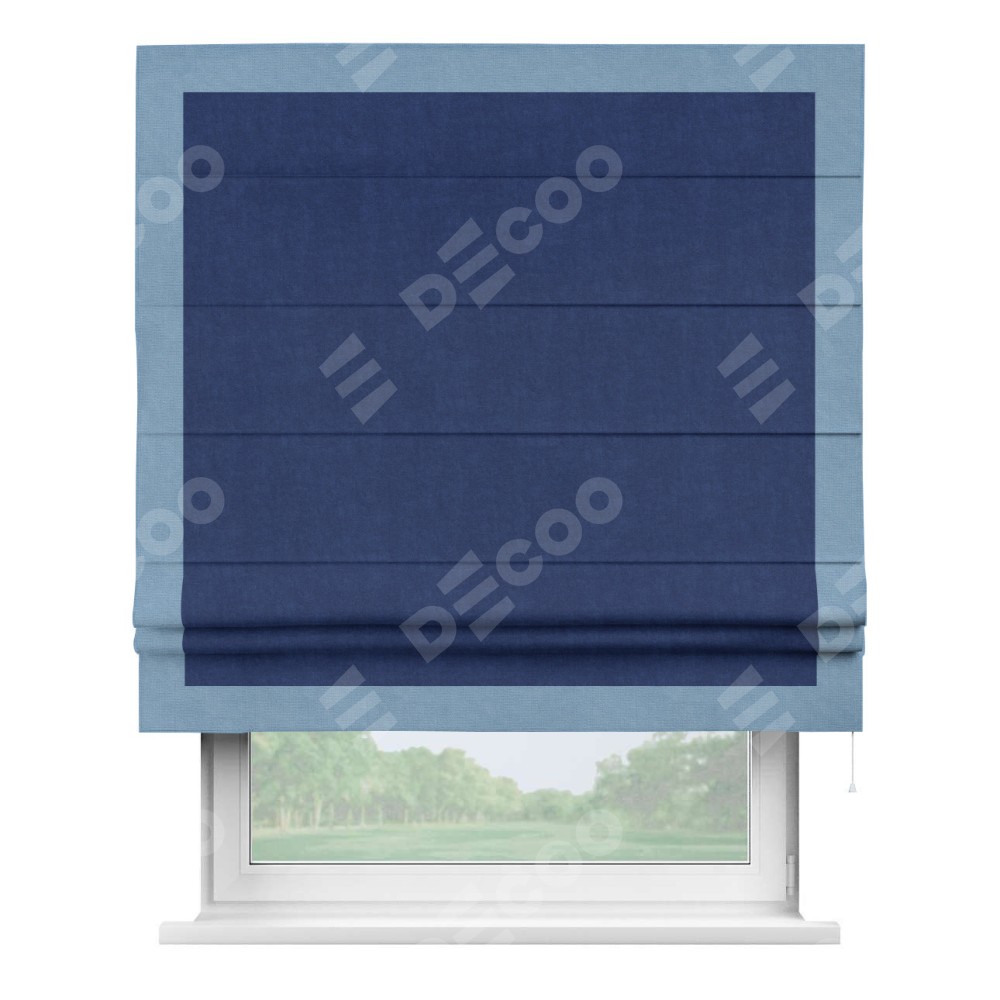 Римская штора «Кортин» для проема, канвас синий электрик, с кантом Чесс