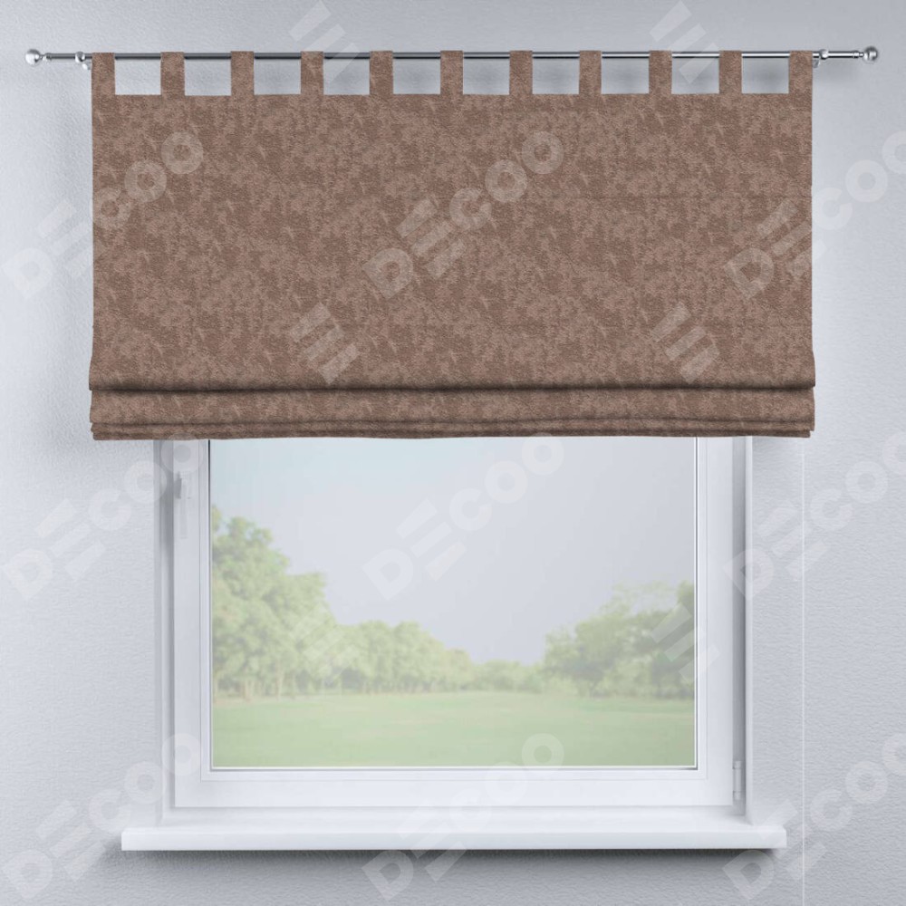 Римская штора производителя «Cortin», используется для проёма, пошита из ткани софт мрамор капучино, артикул ткани 93577. Данная модель пошита на петлях, комплектуется на выбор круглым карнизом и подходит для монтажа на стену. Римская штора на петлях имеет простую систему регулировки высоты, отличительным преимуществом данной модели является простой способ монтажа. Достаточно повесить ее на трубу и штора готова!