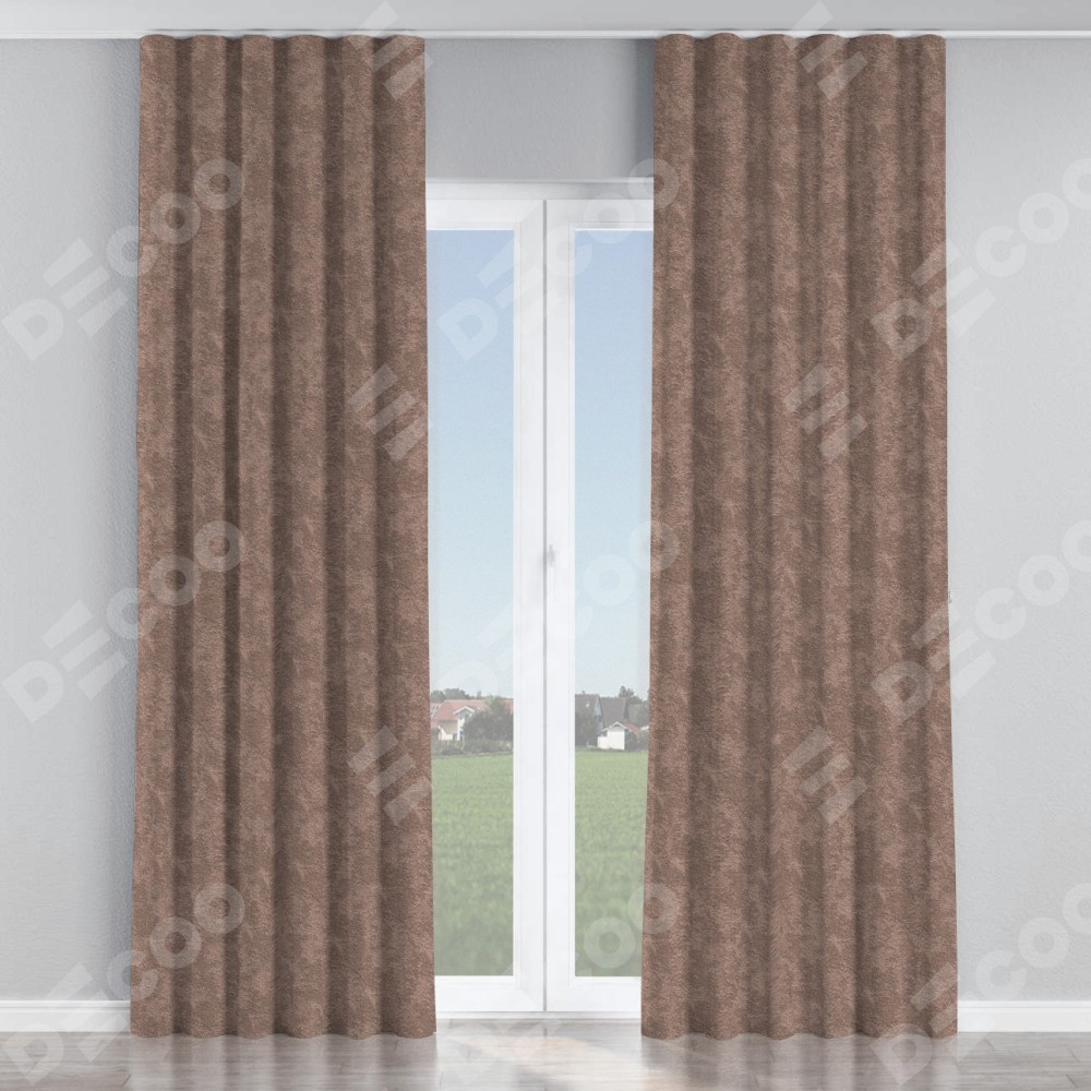 Комплект прямых штор, от производителя «Cortin», пошиты из ткани софт мрамор капучино, артикул ткани 93577. С изнаночной стороны в верхней части штор пристрачивается шторная лента с декоративными складками «Волна». Для создания элегантных складок прямые шторы шьются по стандарту с коэффициентом 1:2 (на 100 см. ширины проёма 200 см. ширины ткани).