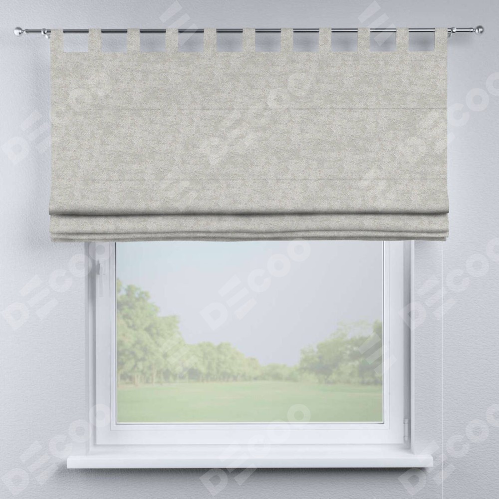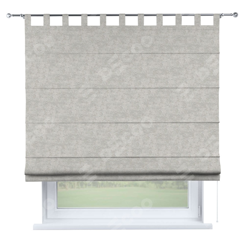 Римская штора производителя «Cortin», используется для проёма, пошита из ткани софт мрамор светло-серый, артикул ткани 93582. Данная модель пошита на петлях, комплектуется на выбор круглым карнизом и подходит для монтажа на стену. Римская штора на петлях имеет простую систему регулировки высоты, отличительным преимуществом данной модели является простой способ монтажа. Достаточно повесить ее на трубу и штора готова!
