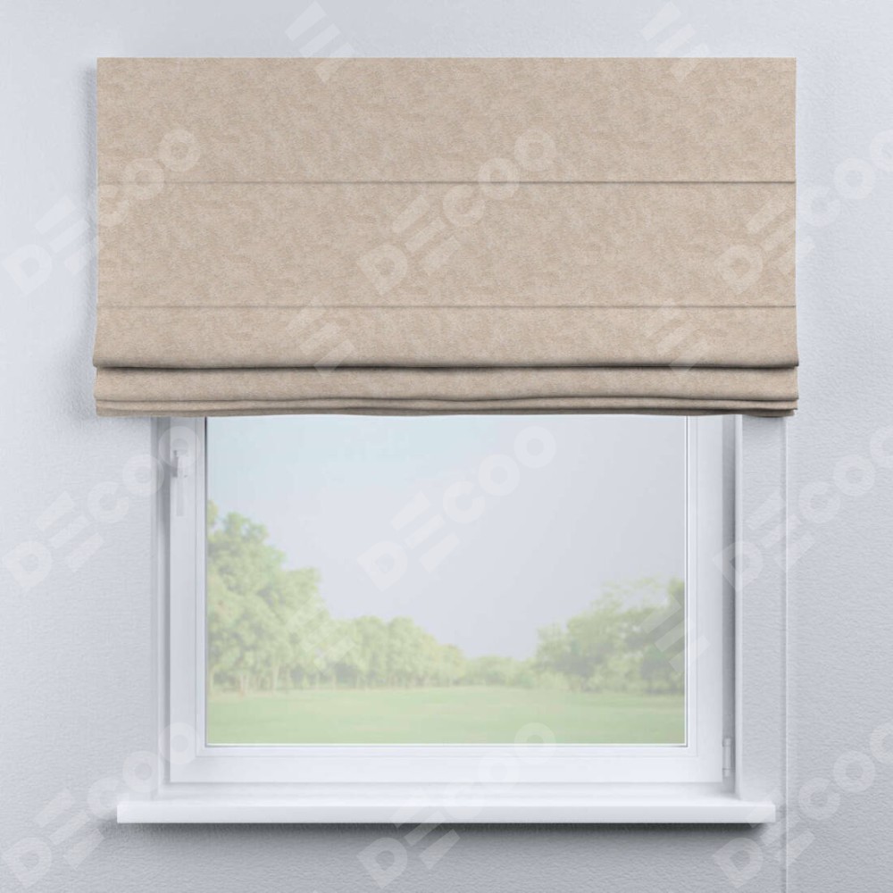 Классическая римская штора производителя «Cortin», пошита из ткани софт мрамор шампань, артикул: 93575. Имеет универсальный механизм и подходит для монтажа: на потолок, на стену и в нишу.
