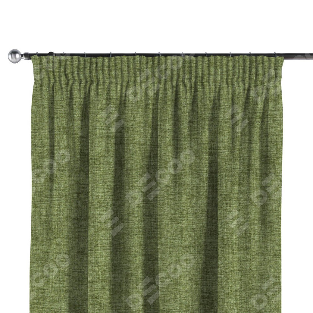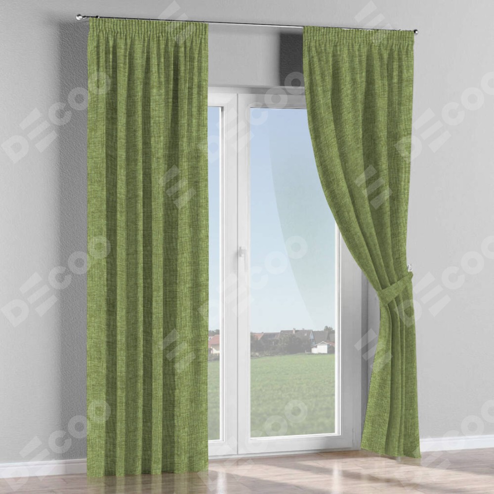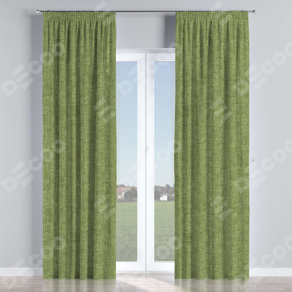 Комплект прямых штор, от производителя «Cortin», пошиты из ткани рогожка димаут травяной, артикул ткани 91021. С изнаночной стороны в верхней части штор пристрачивается шторная лента с декоративными складками «Карандаш». Для создания элегантных складок прямые шторы шьются по стандарту с коэффициентом 1:2 (на 100 см. ширины проёма 200 см. ширины ткани).