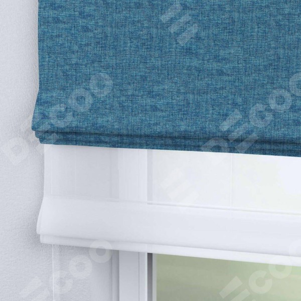 Двойная римская штора «День-ночь» от производителя Cortin предназначена для использования в проёмах. Эта штора уникальна тем, что состоит из двух полотен. На лицевой стороне находится рогожка димаут лазурно-синий (артикул: 91024), обеспечивающий эффективное затемнение. В комплект также входит вторая ткань — легкий белый тюль (артикул: V-01), который добавляет изящества и легкости оформлению окна. Кроме того, доступны и другие разновидности ткани тюль, выбор которых доступен по ссылке .