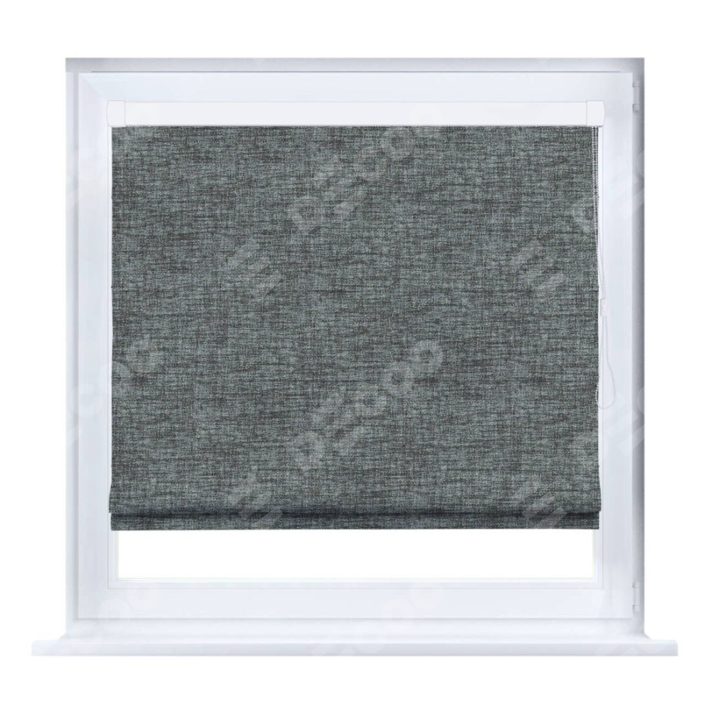 Римская штора «Кортин», рогожка димаут тёмно-серый, на створку