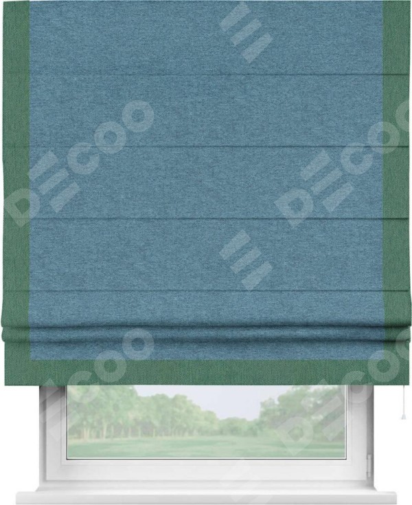 Римская штора с отделкой кантом «Виктория», пошита из ткани твид блэкаут светло-синий, артикул: 90935. представляет собой элегантное решение для оконного оформления. Кант по бокам и снизу шторы добавляет изысканности и аккуратности внешнему виду, подчеркивая линии и форму шторы. Этот элемент декора не только украшает, но и выполняет практическую функцию, защищая края ткани от износа. Кант может быть выполнен в контрастном или гармонирующем цвете, что позволяет добиться различных стилевых эффектов и легко вписать штору в интерьер комнаты.