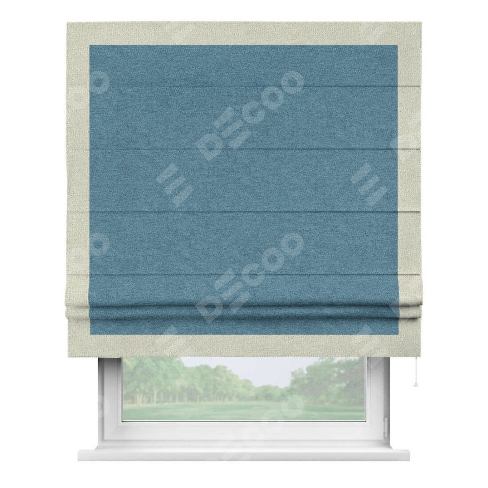 Римская штора «Кортин» с кантом Чесс, для проема, ткань твид блэкаут, светло-синий