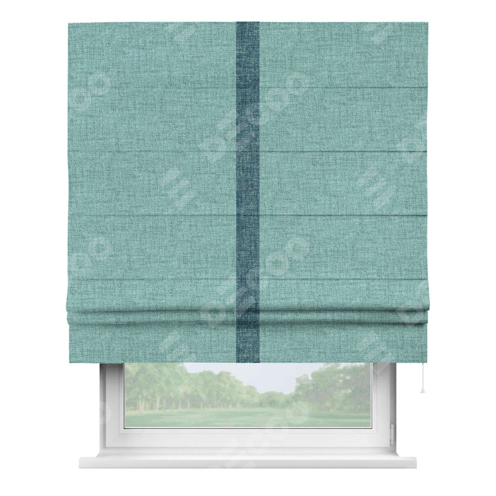 Римская штора «Кортин» для проёма, рогожка димаут аквамариновый крайола, с кантом Хайвэй