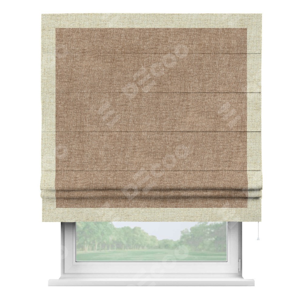 Римская штора «Кортин» для проёма, рогожка димаут светло-коричневый, с кантом Чесс