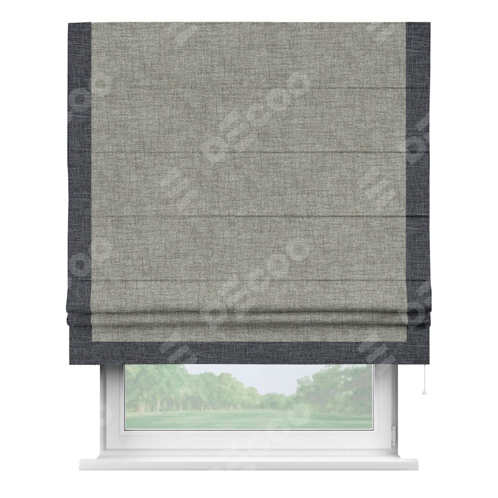 Римская штора «Кортин» для проёма, рогожка димаут серый дуб, с кантом Виктория