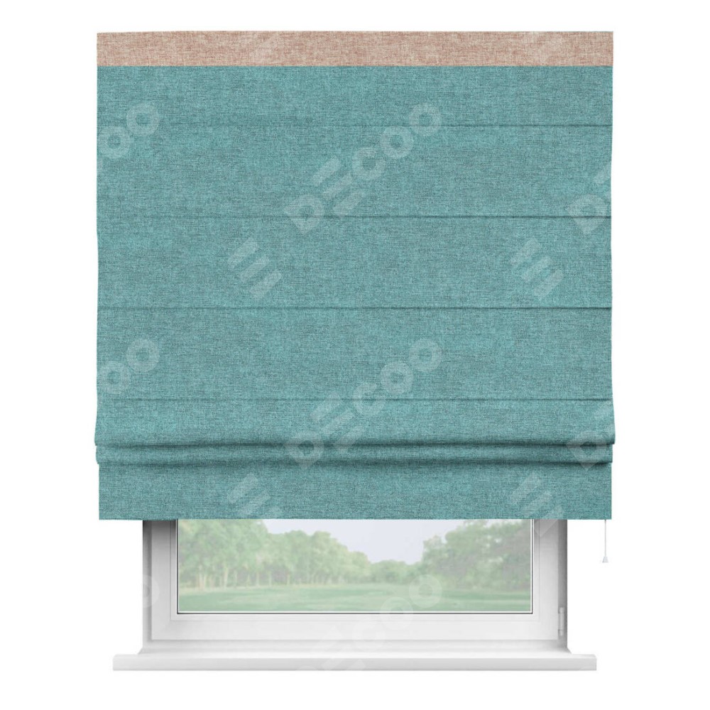 Римская штора «Кортин» с кантом Кинг, для проема, ткань лён кашемир бирюзовый
