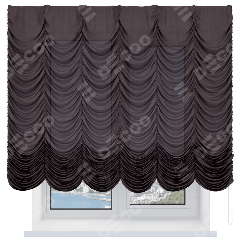 Французская штора производителя «Cortin», используется для проёма, пошита из ткани лён коричневый, артикул ткани 53443. Имеет универсальный механизм и подходит для монтажа: на потолок и на стену.
