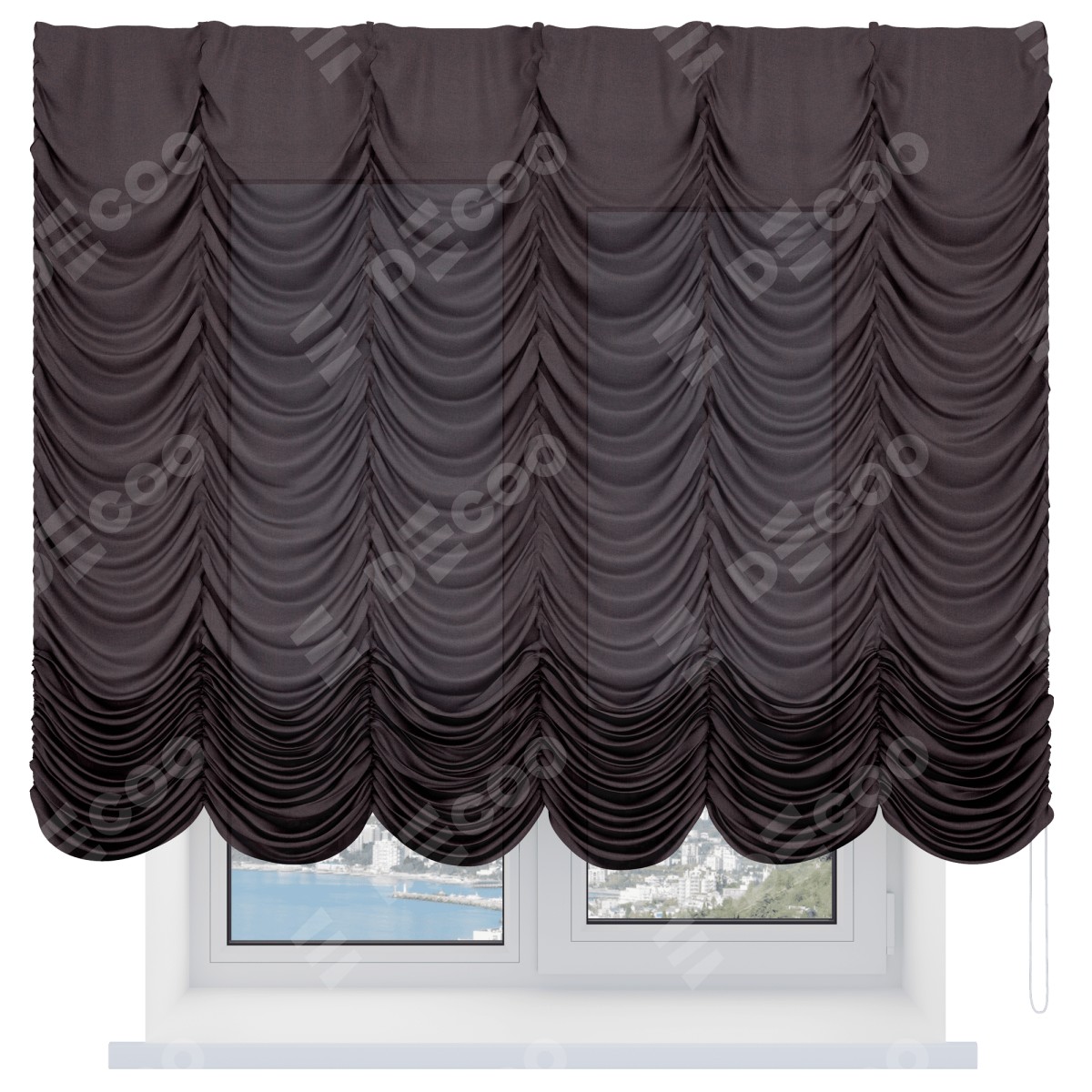 Французская штора производителя «Cortin», используется для проёма, пошита из ткани лён коричневый, артикул ткани 53443. Имеет универсальный механизм и подходит для монтажа: на потолок и на стену.