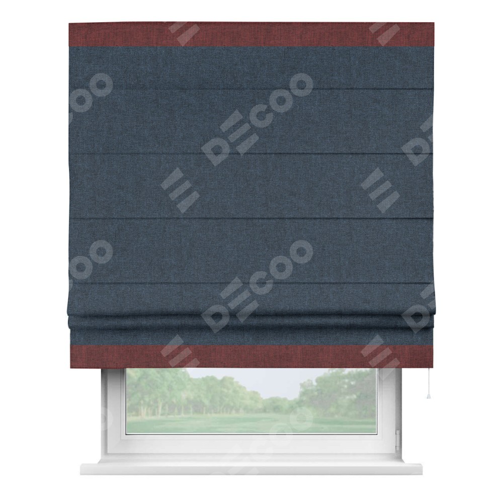 Римская штора «Кортин» для проёма, лён кашемир синий, с кантом Горизонт