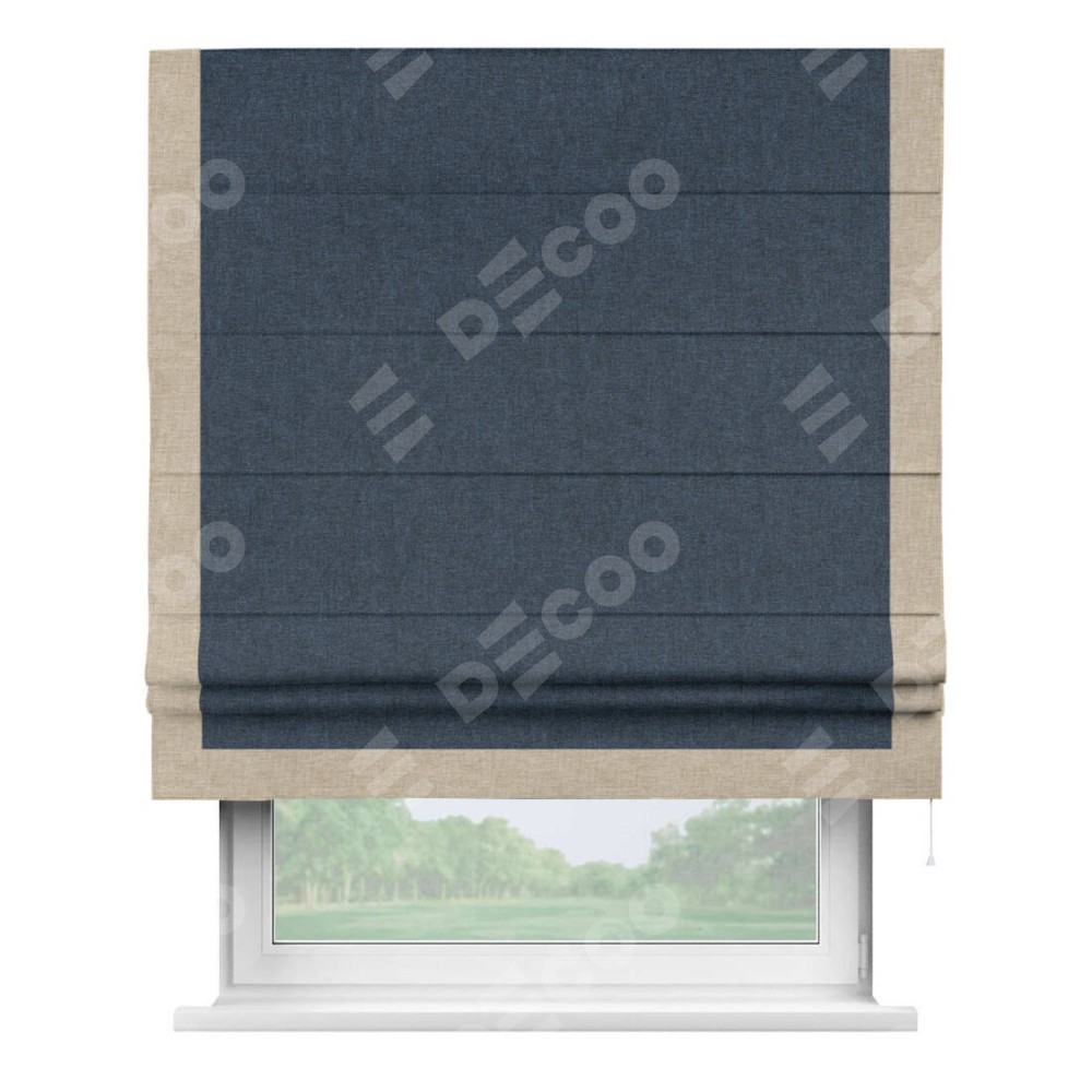 Римская штора «Кортин» для проёма, лён кашемир синий, с кантом Виктория