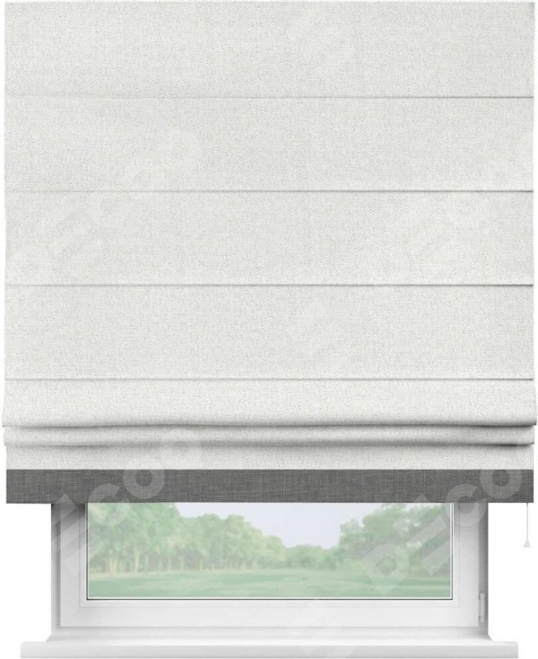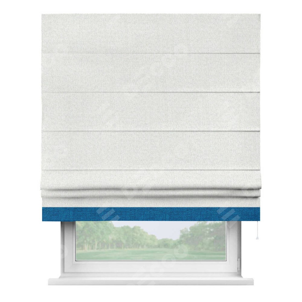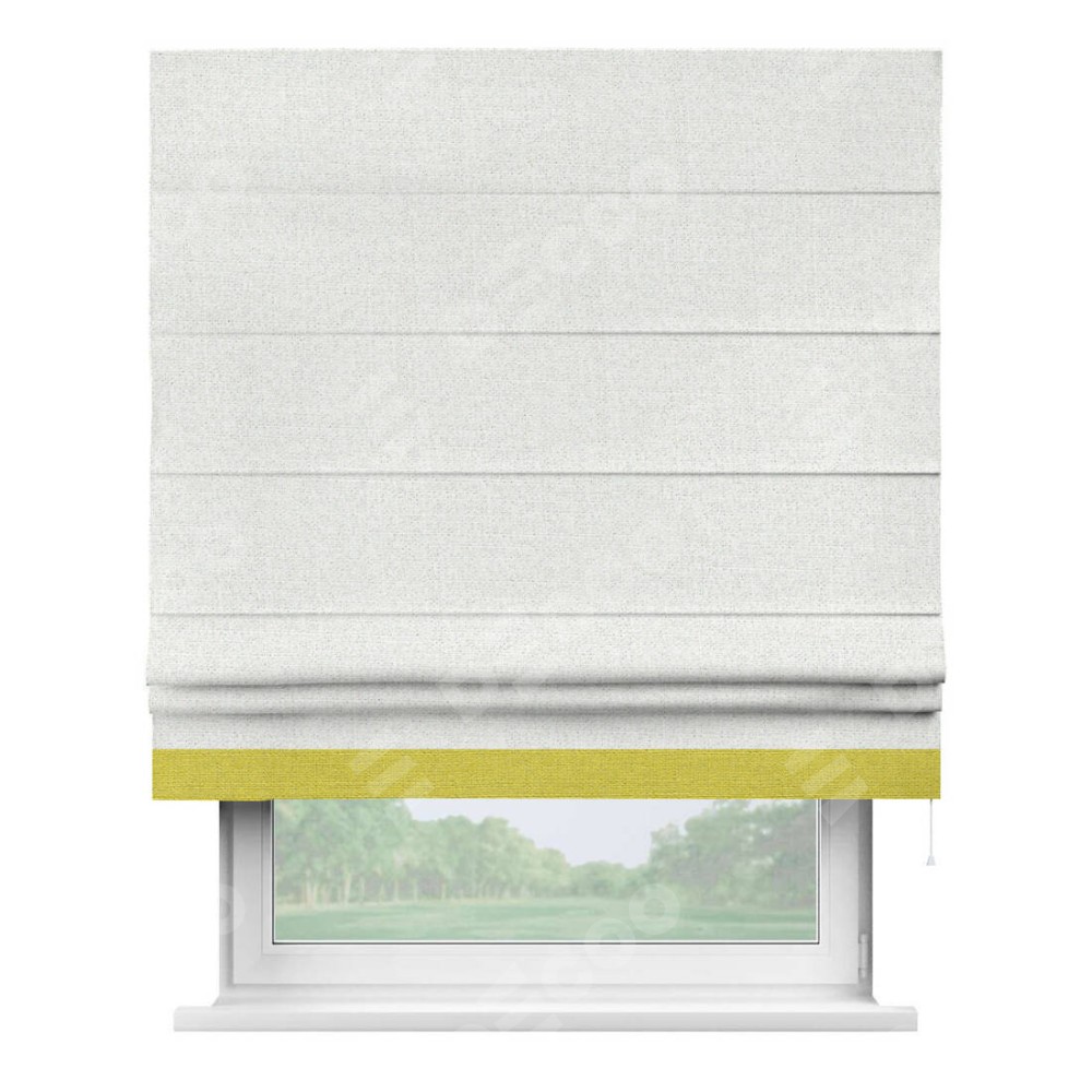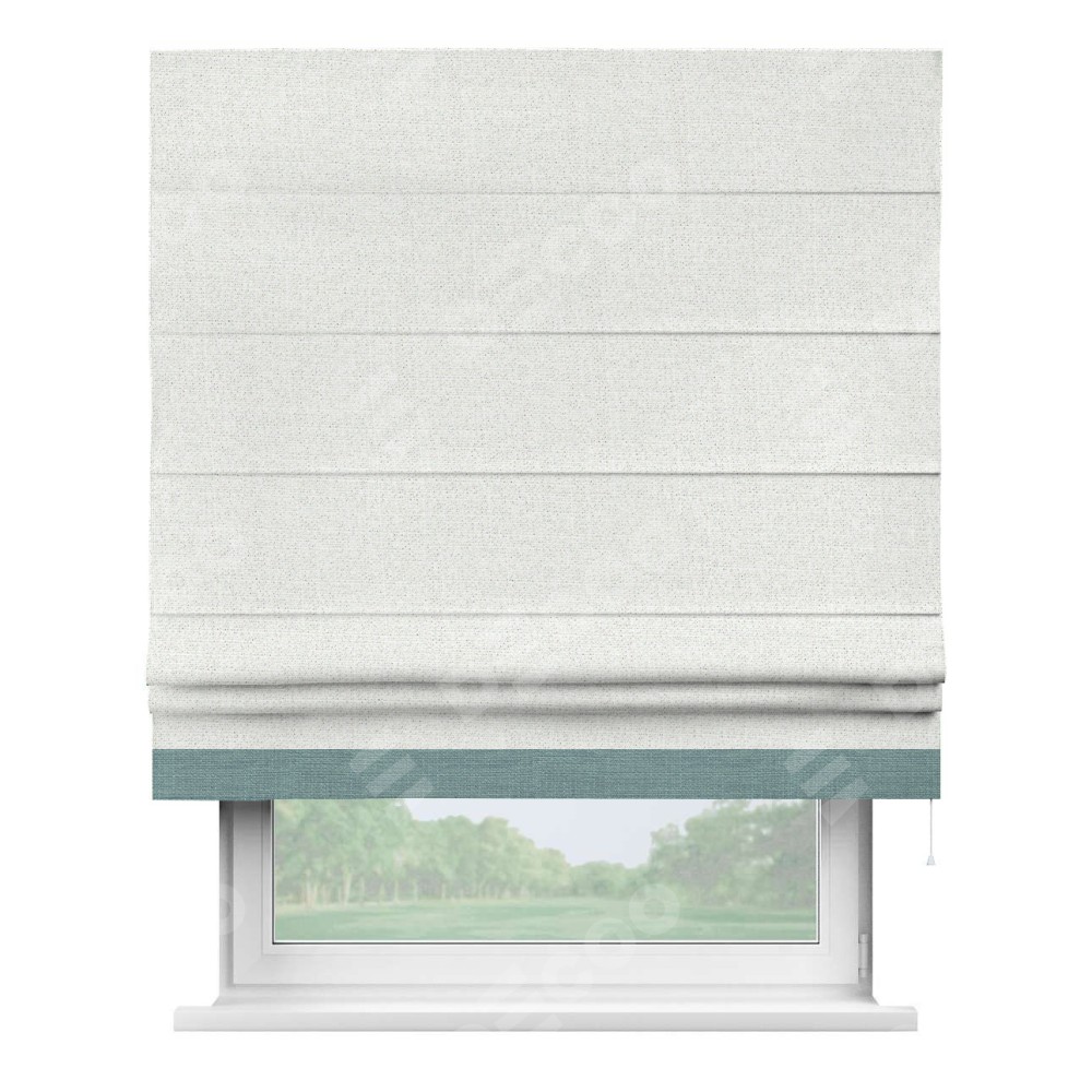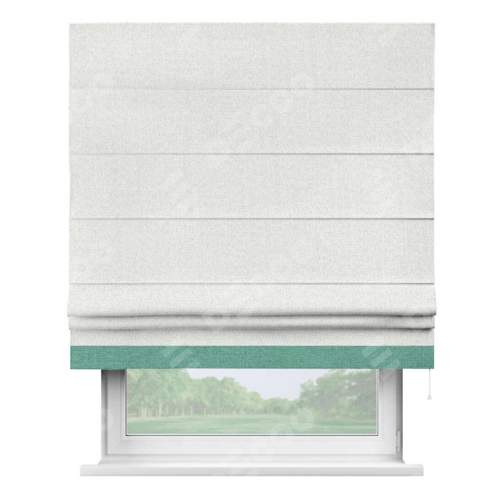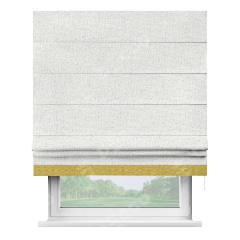 Римская штора пошита из ткани лён шампань, артикул: 91399, с отделкой кантом «Джестер» выделяется своей уникальной особенностью — кантом, расположенным только снизу шторы. Этот дизайн добавляет оригинальности и игривости оконному оформлению, делая акцент на нижней части шторы и создавая интересный визуальный эффект. Отделка кантом на нижнем крае не только служит эстетической функции, но и способствует увеличению прочности и износостойкости ткани в этом месте.