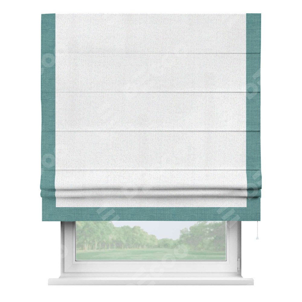 Римская штора с отделкой кантом «Виктория», пошита из ткани лён белоснежный, артикул: 95632. представляет собой элегантное решение для оконного оформления. Кант по бокам и снизу шторы добавляет изысканности и аккуратности внешнему виду, подчеркивая линии и форму шторы. Этот элемент декора не только украшает, но и выполняет практическую функцию, защищая края ткани от износа. Кант может быть выполнен в контрастном или гармонирующем цвете, что позволяет добиться различных стилевых эффектов и легко вписать штору в интерьер комнаты.